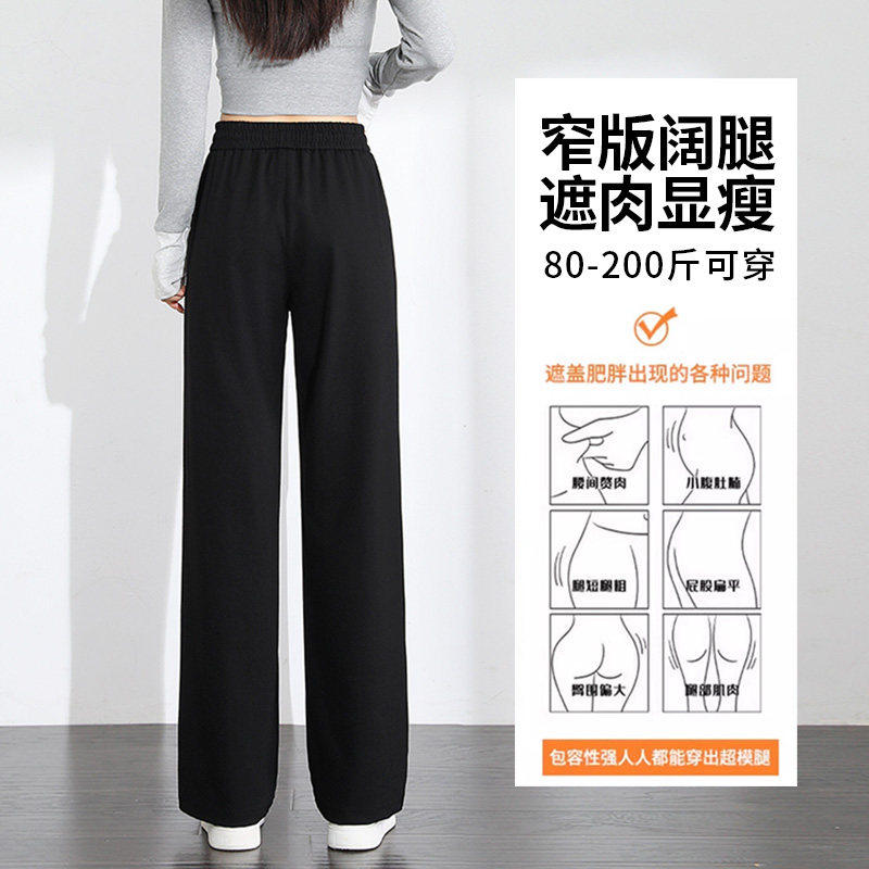 冰丝阔腿裤女夏薄款2025新款裤子大尺码宽松直筒裤夏季小个子休闲