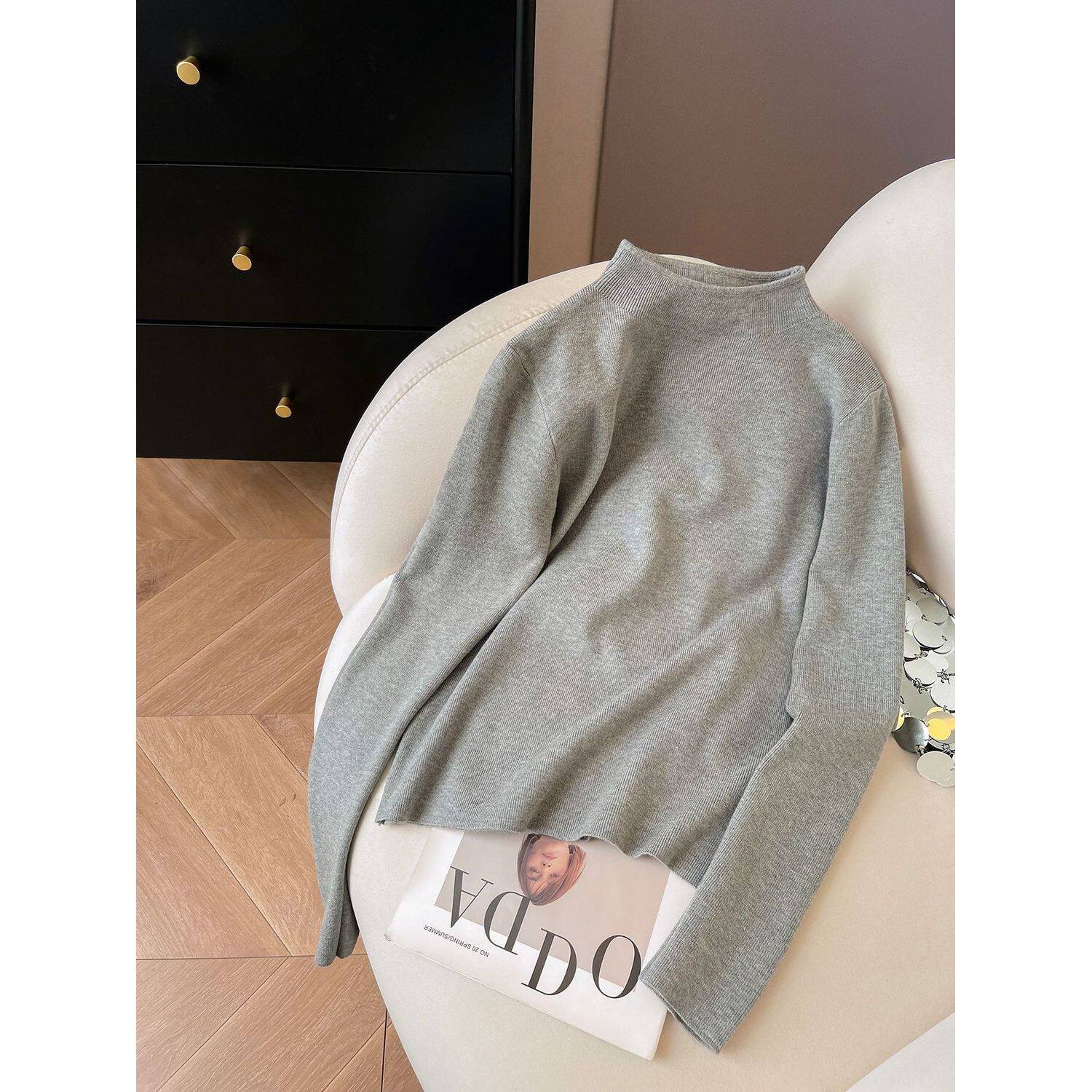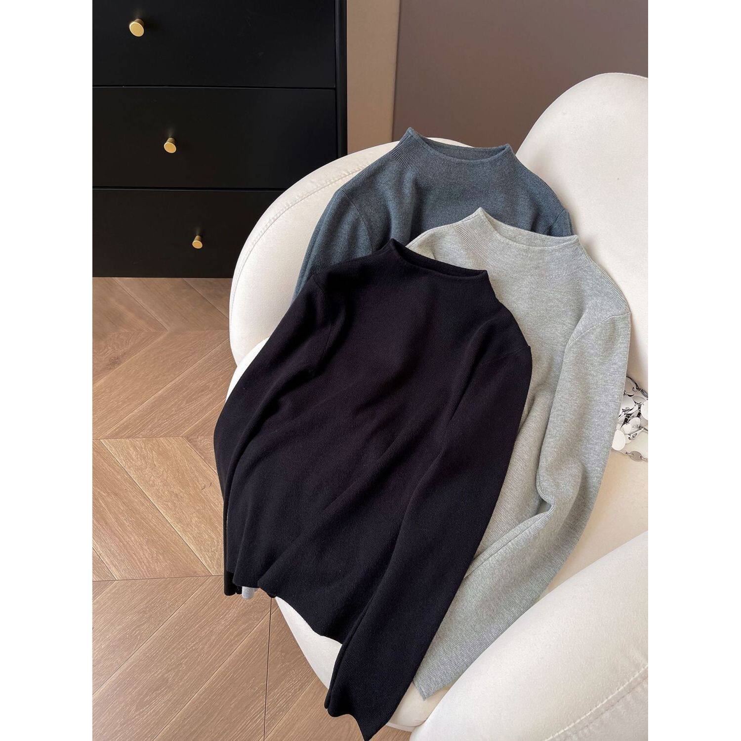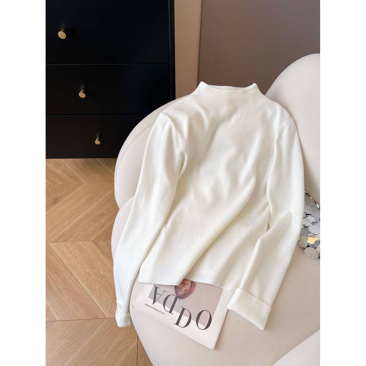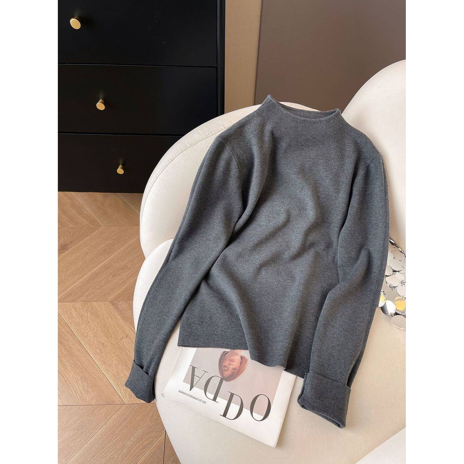 小立领奶fufu软糯针织长袖打底衫女2025冬季毛衣秋装简约上衣内搭