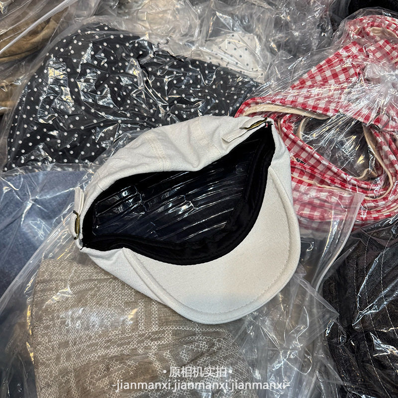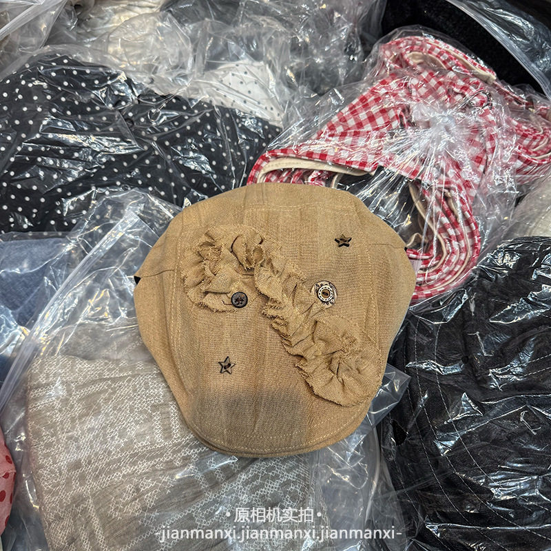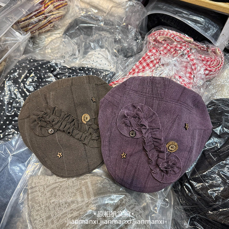 新款复古褶皱花边纽扣前进帽女春夏透气显脸小文艺小众时尚八角帽