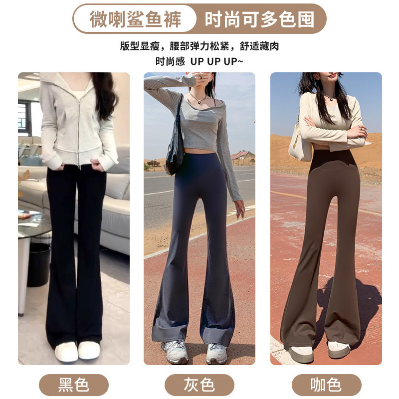 小个子冰丝微喇瑜伽裤女外穿夏薄款高腰垂坠感运动健身喇叭鲨鱼裤