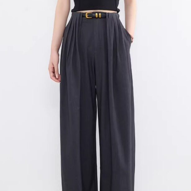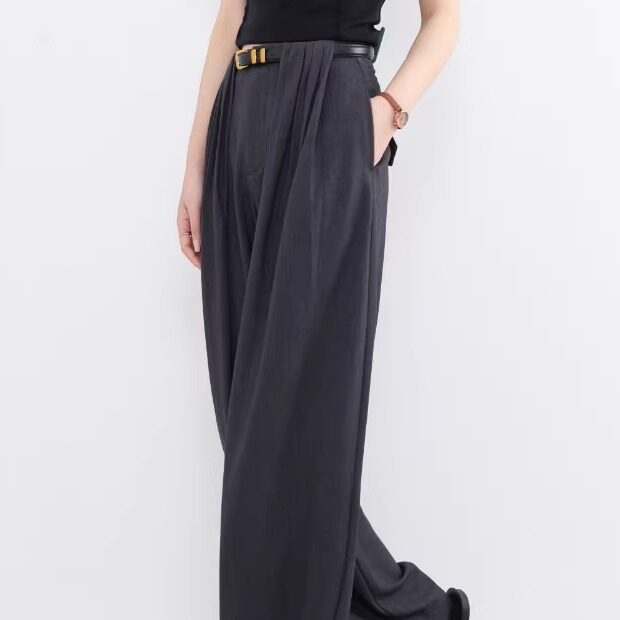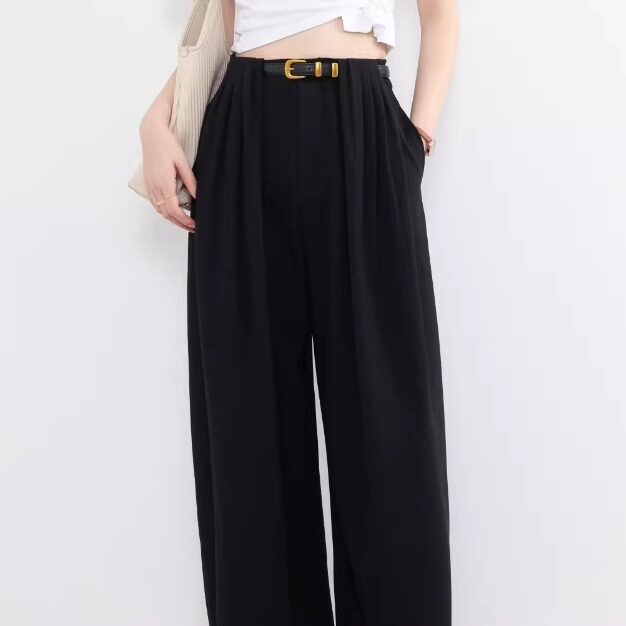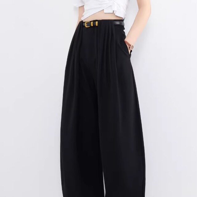 老板潘潘-高腰阔腿裤女黑色长裤松弛感休闲裤极简风8868 裤长102