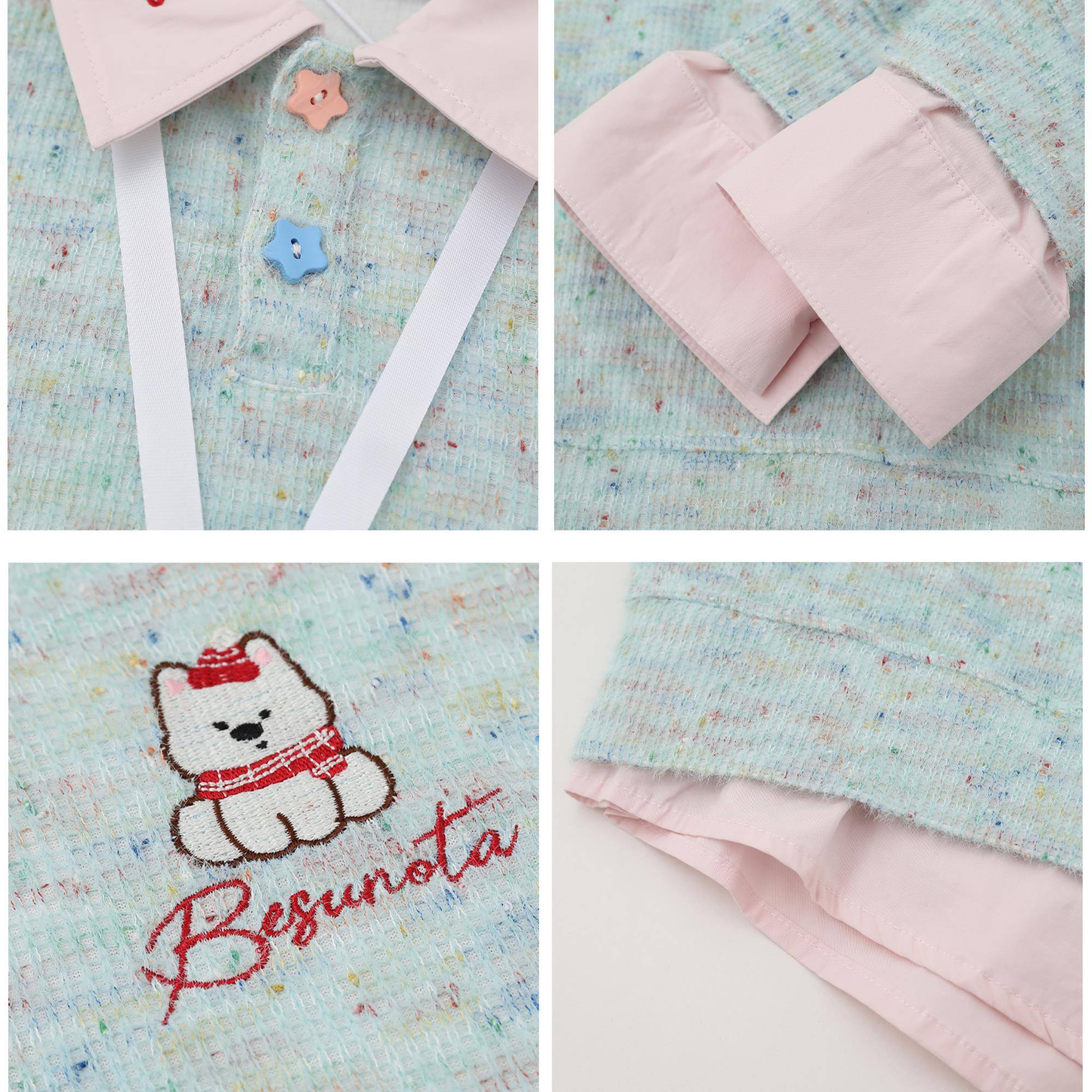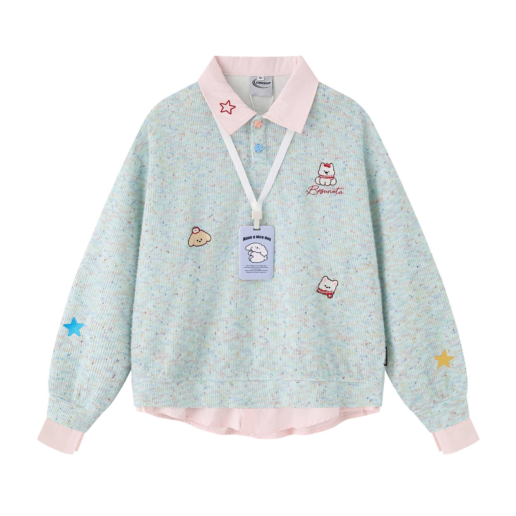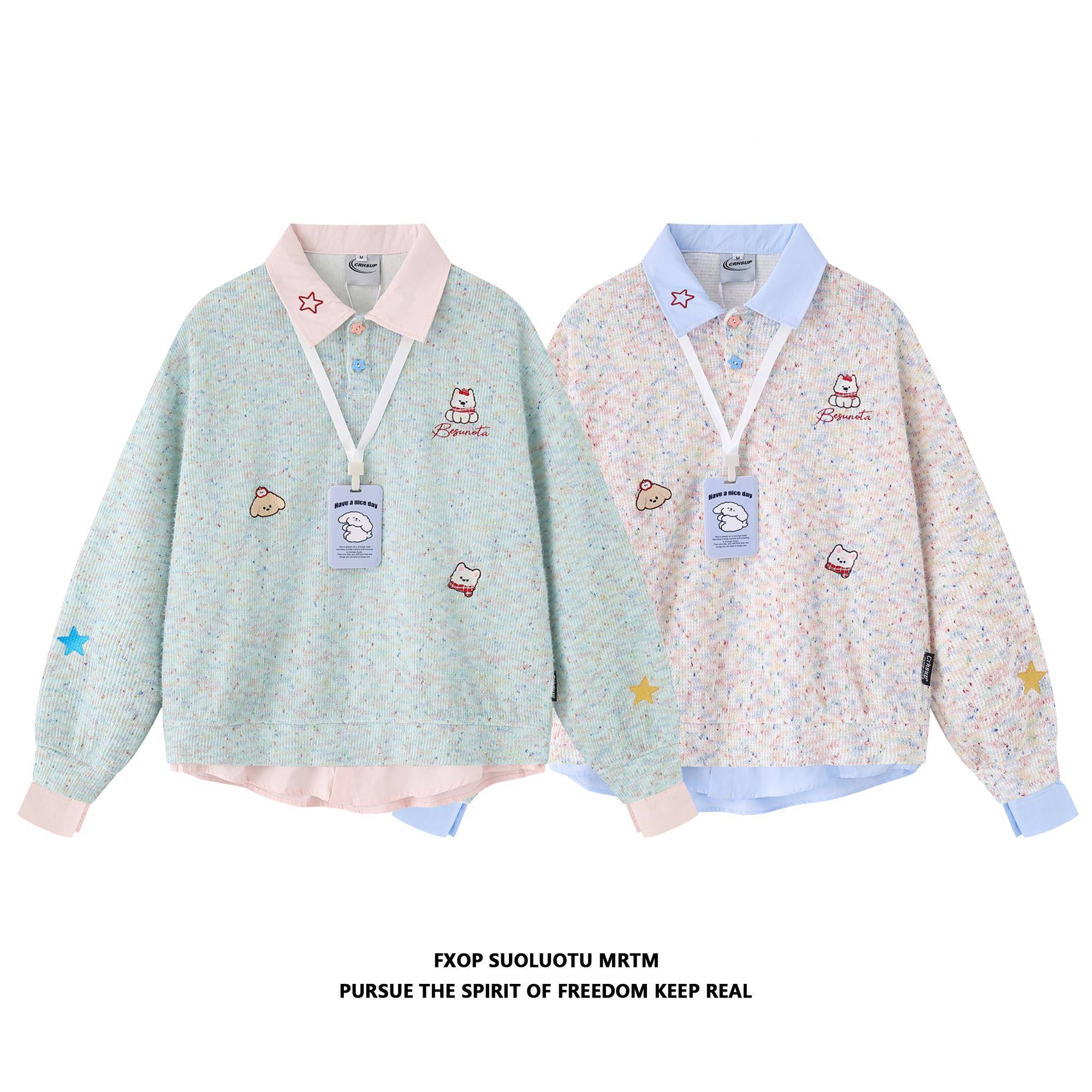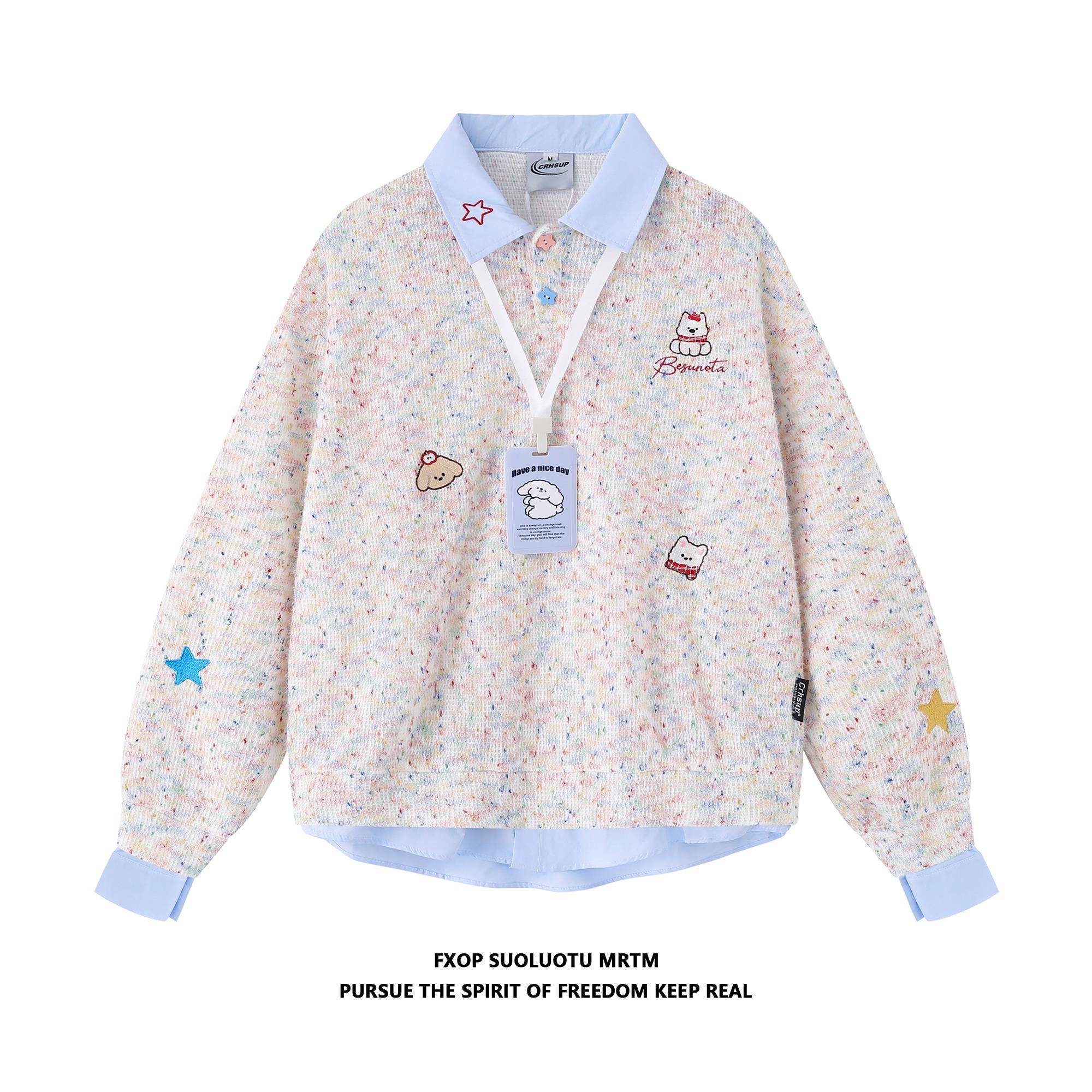 美式星星小狗刺绣彩点针织polo领卫衣女宽松慵懒风假两件上衣