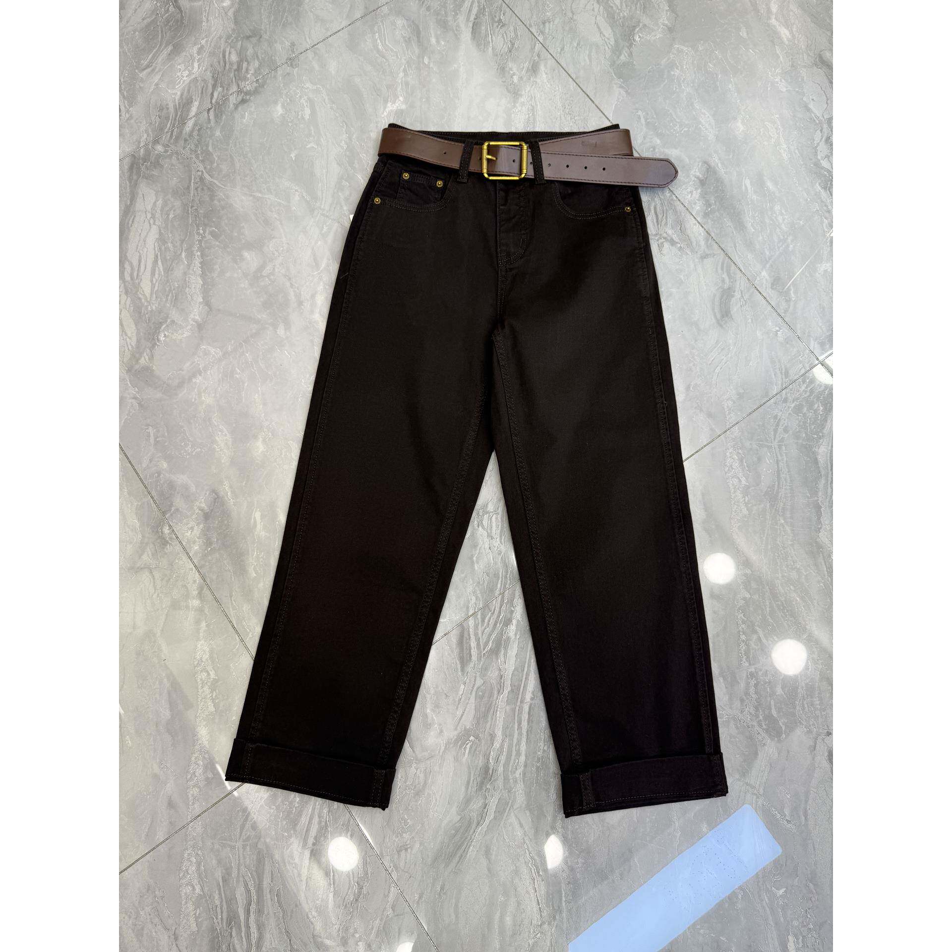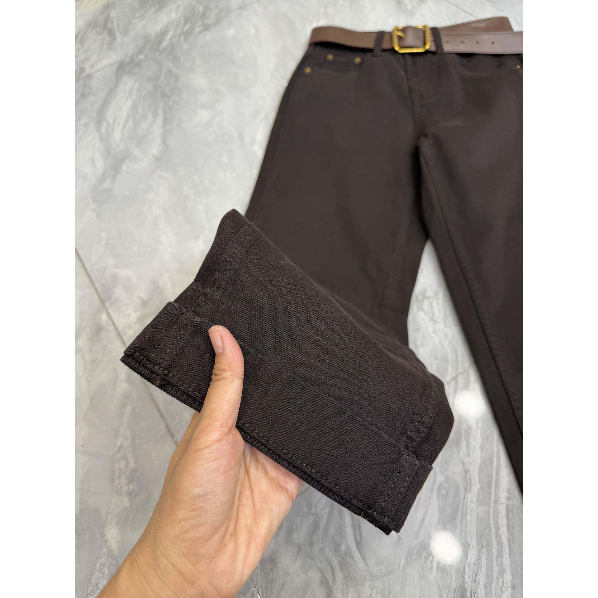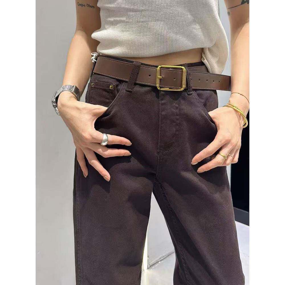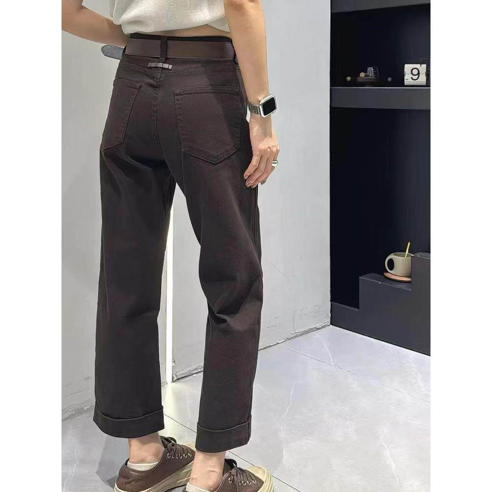 咖啡色法棍裤女士挽边八分弹力牛仔裤2025秋季新款宽松直筒裤显瘦