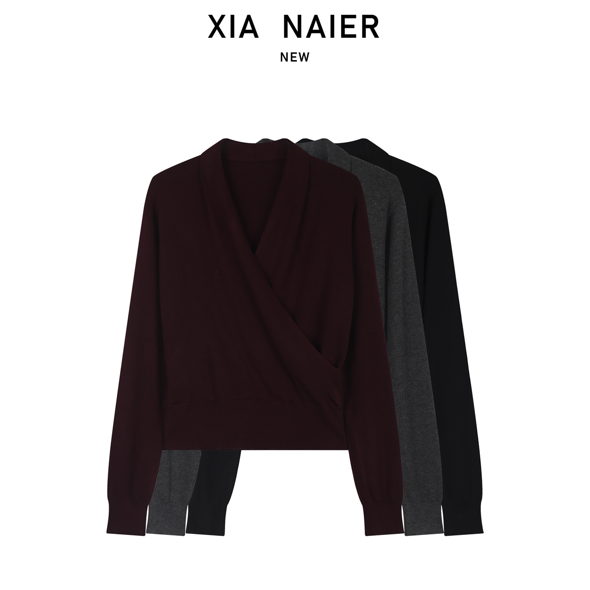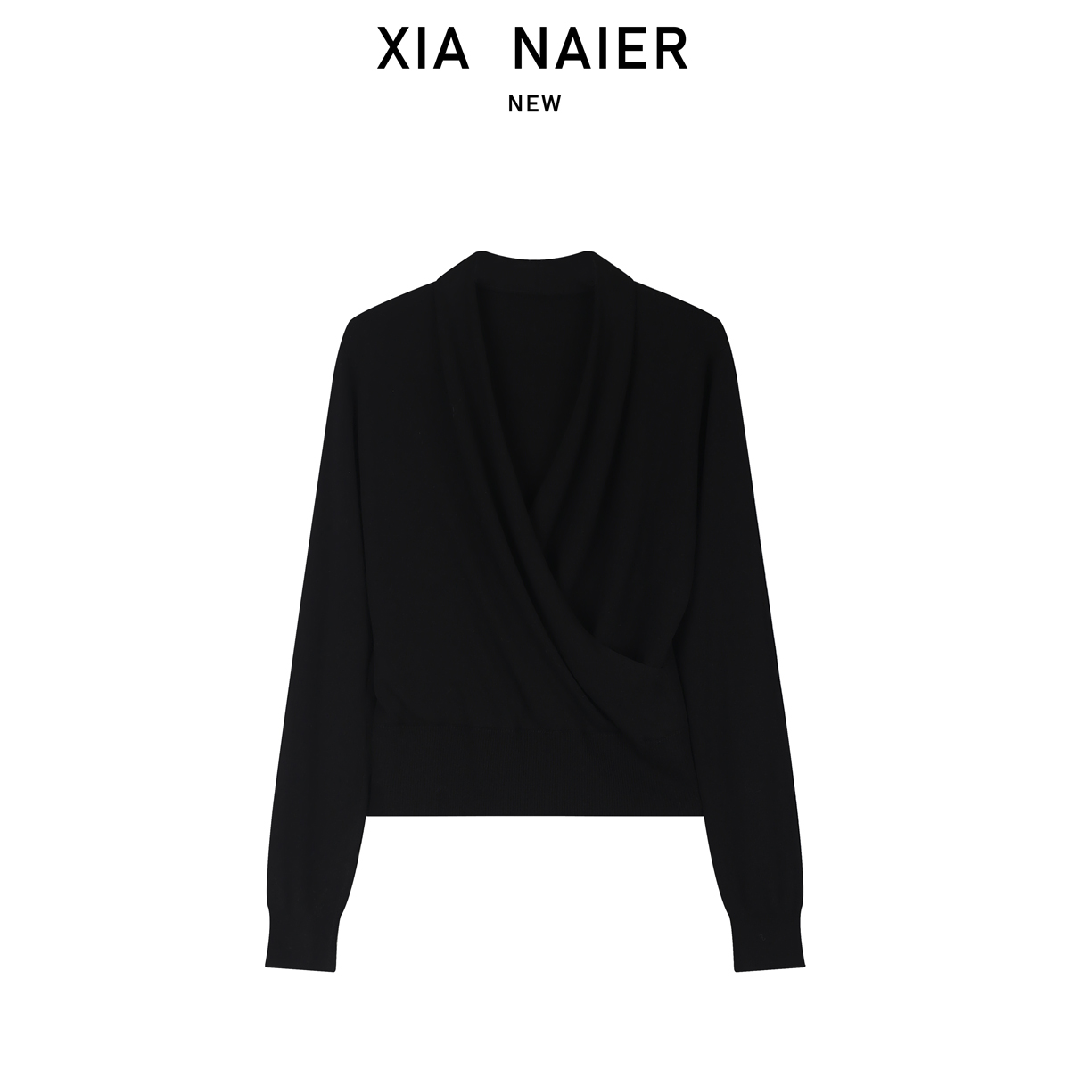 【10%超细羊毛+棉+抗起球工艺】设计感褶皱收腰V领针织上衣13460