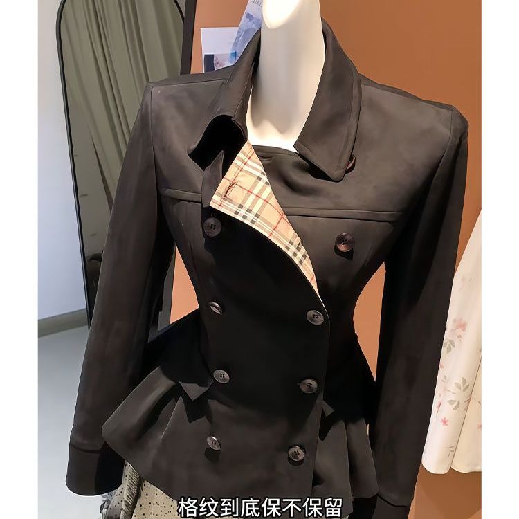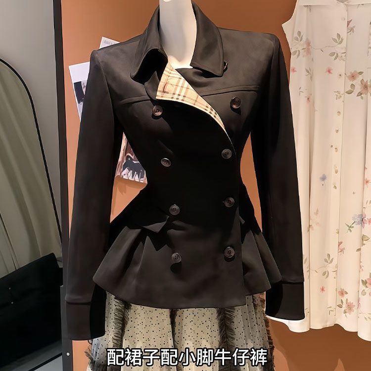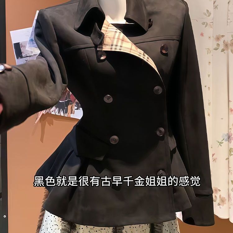 【暗幕法则】韩系秋日穿搭ootd休闲双排扣小众设计感千金风黑外套
