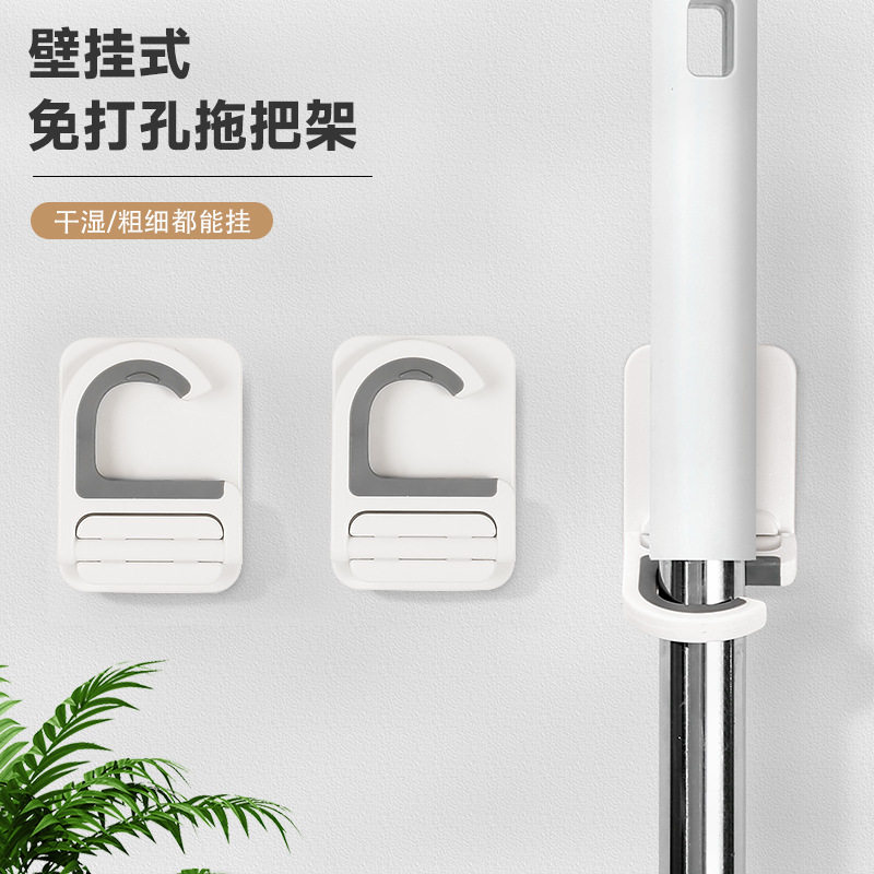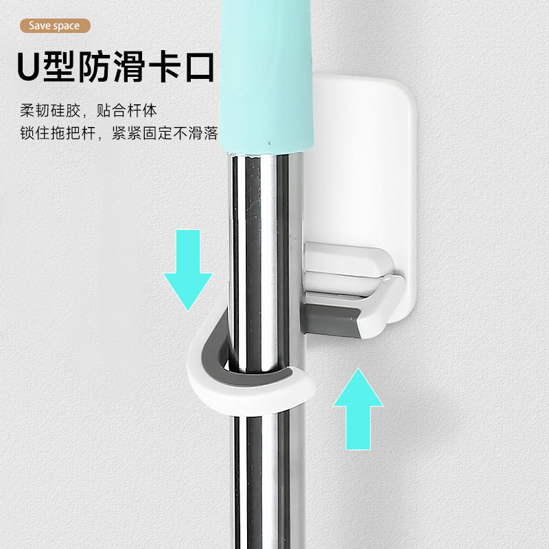 创意强力无痕滑轮拖把夹免打孔挂扫把架 浴室拖把挂钩粘钩挂架