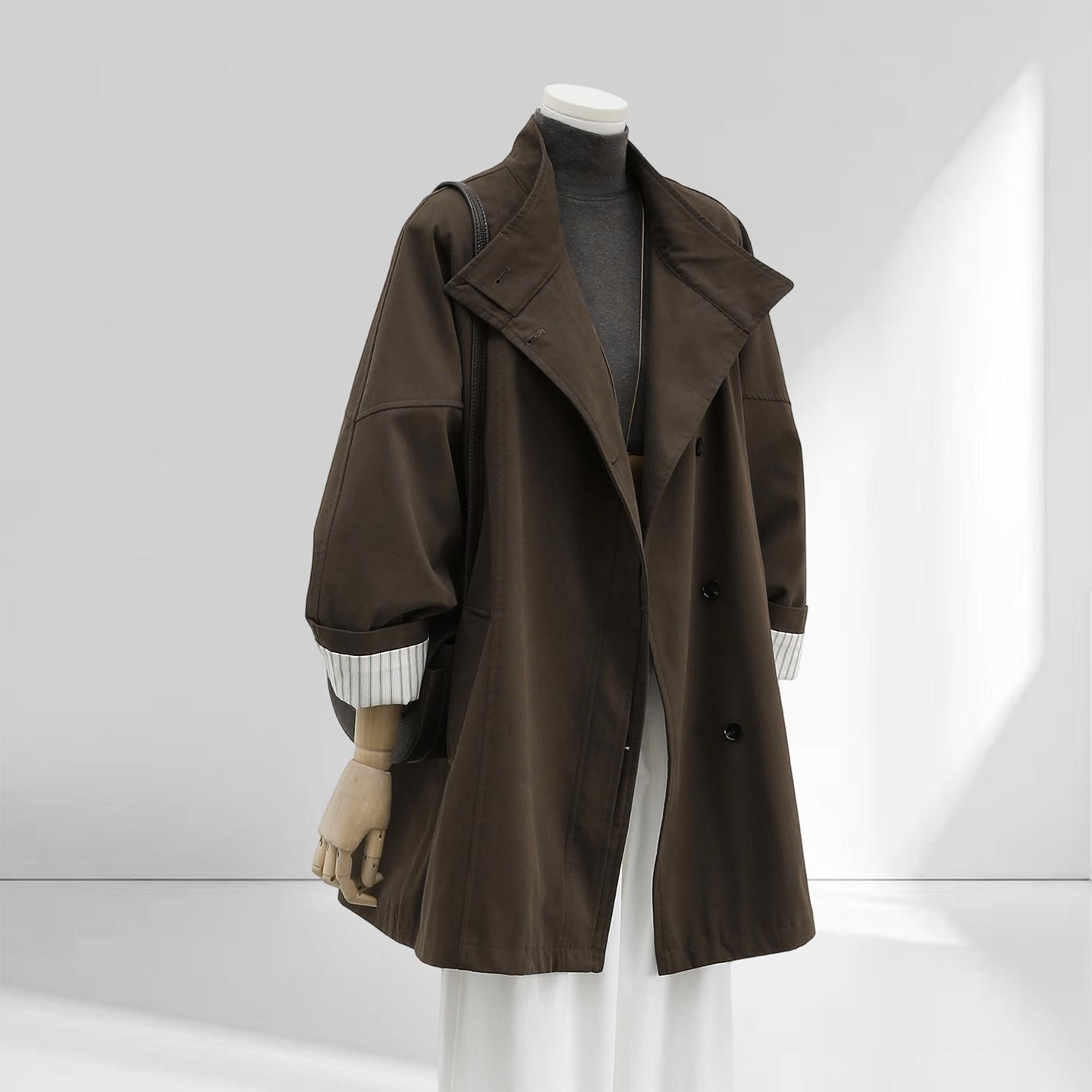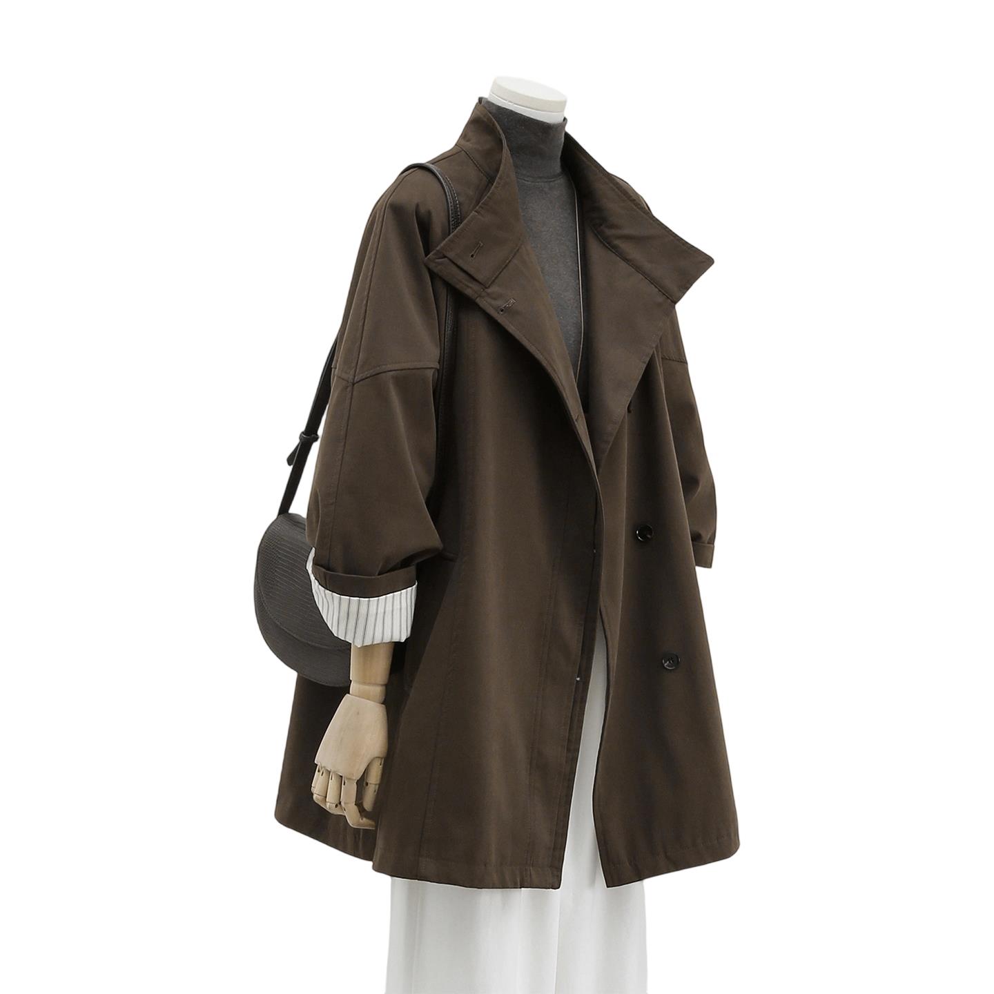 咖色风衣外套女2025春秋季新款韩系立领宽松休闲小个子中长款大衣