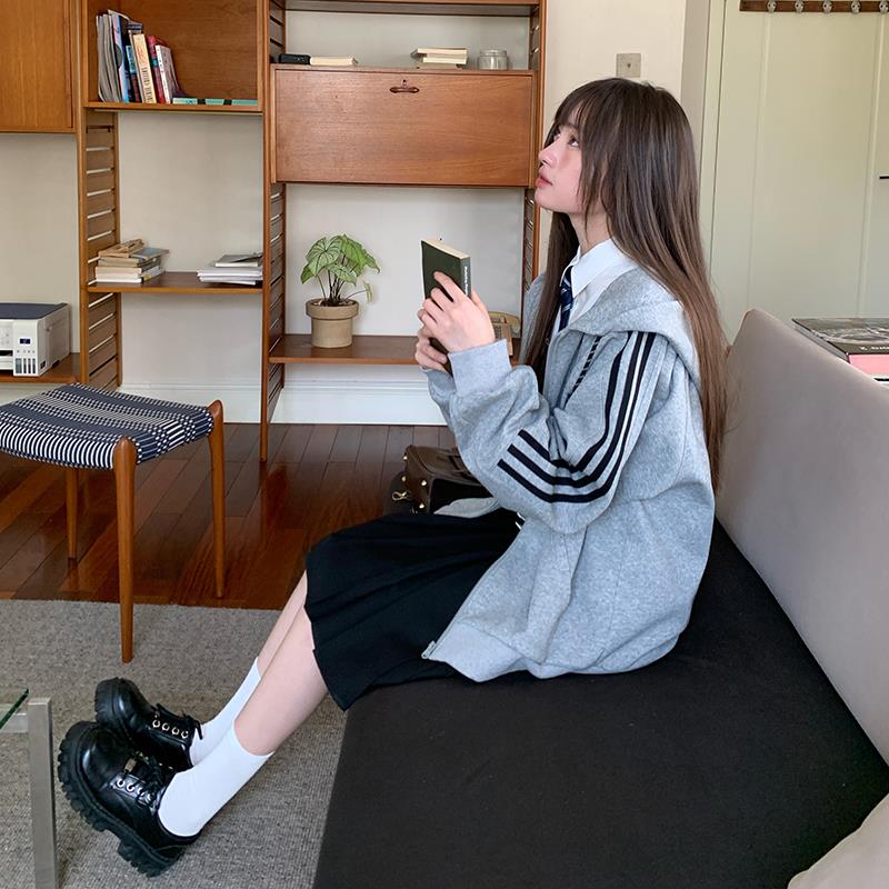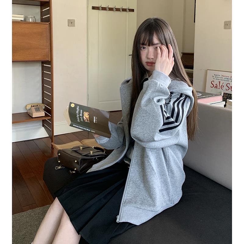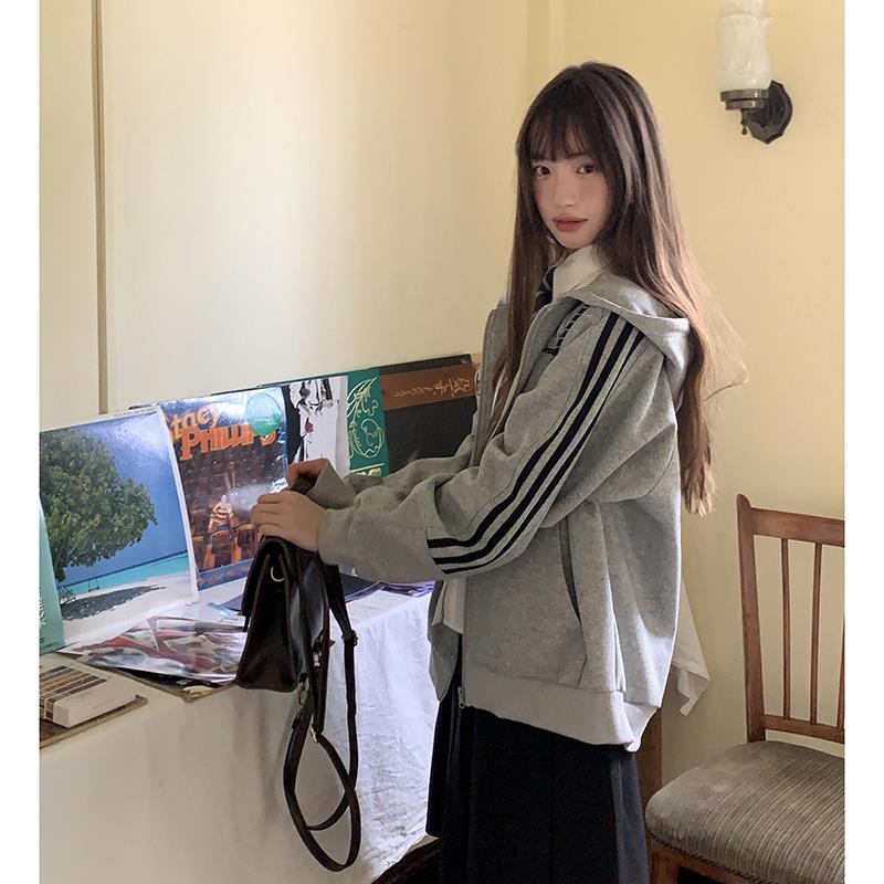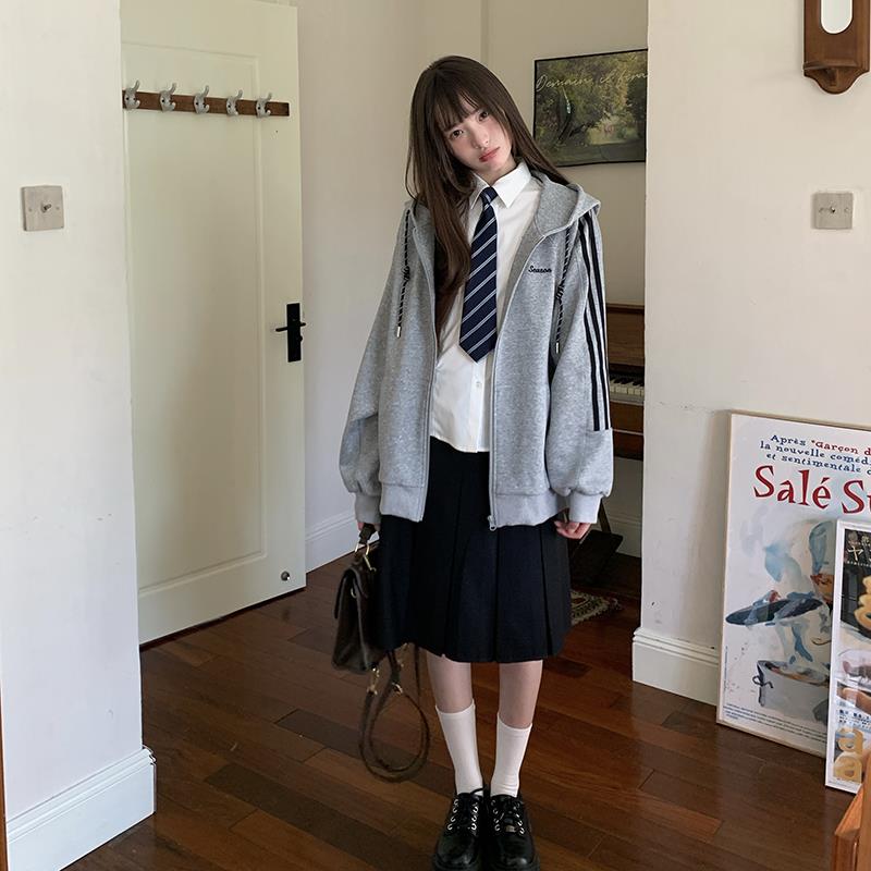 东京岁时记jk刺绣初春灰色卫衣开衫拉链宽松舒适开春学院风外套女