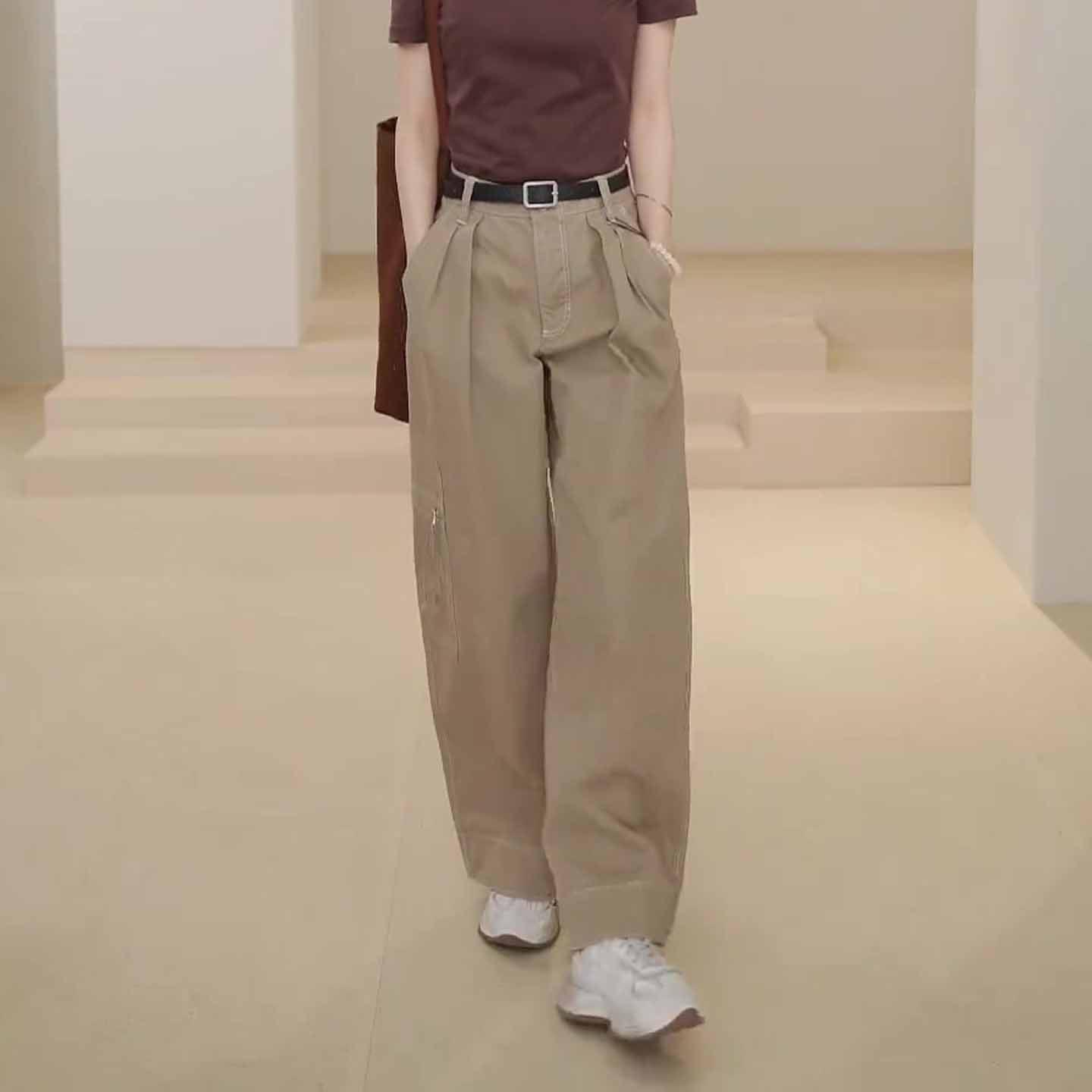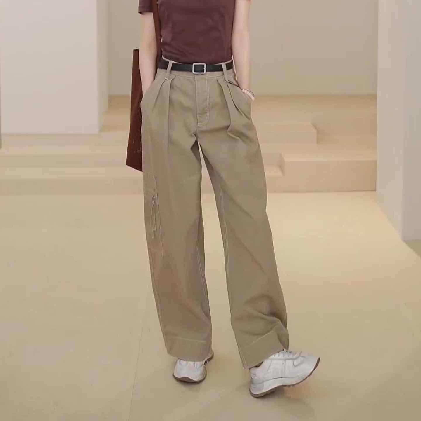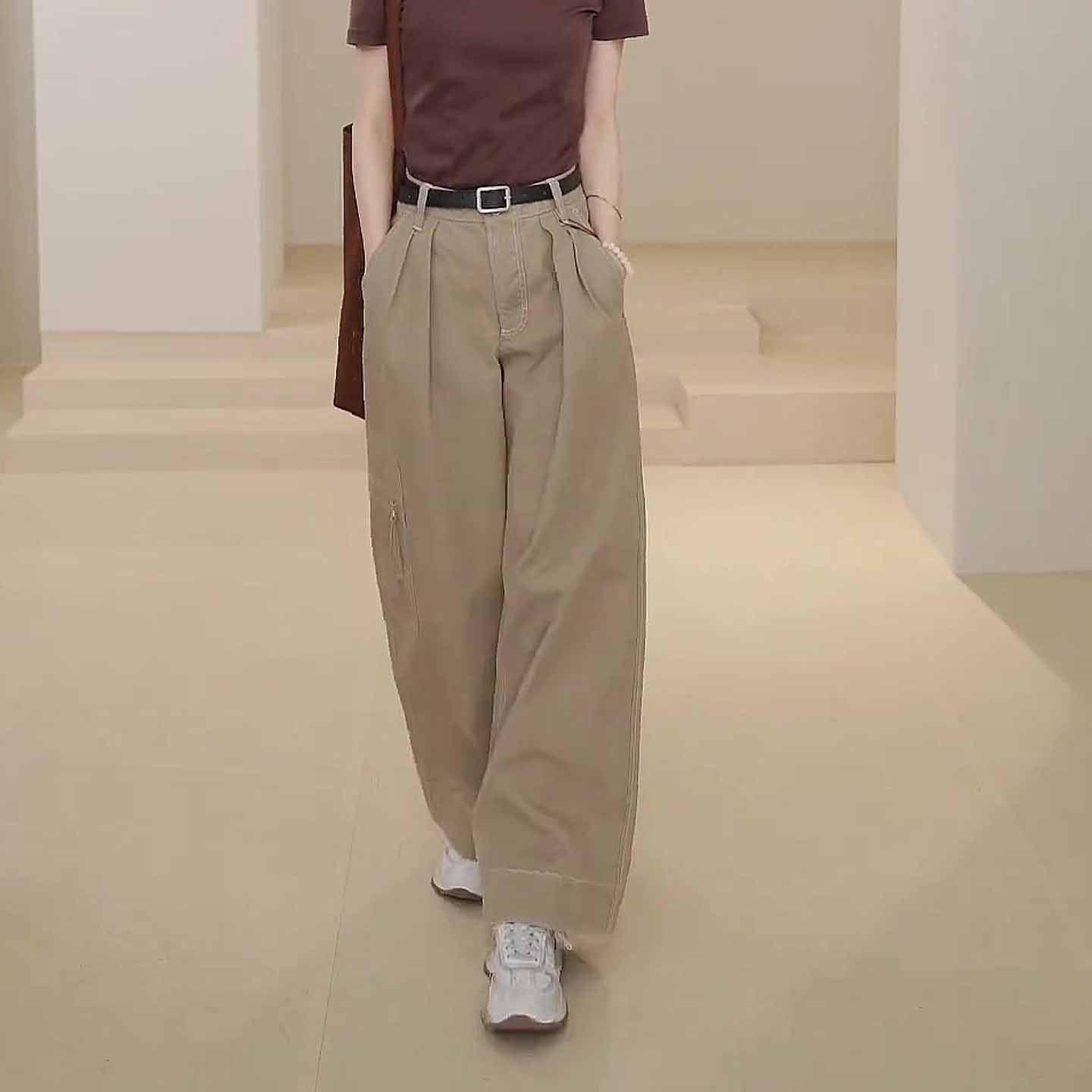 卡其色速干工装裤女2025新款秋季流行爆款显瘦宽松休闲阔腿直筒裤