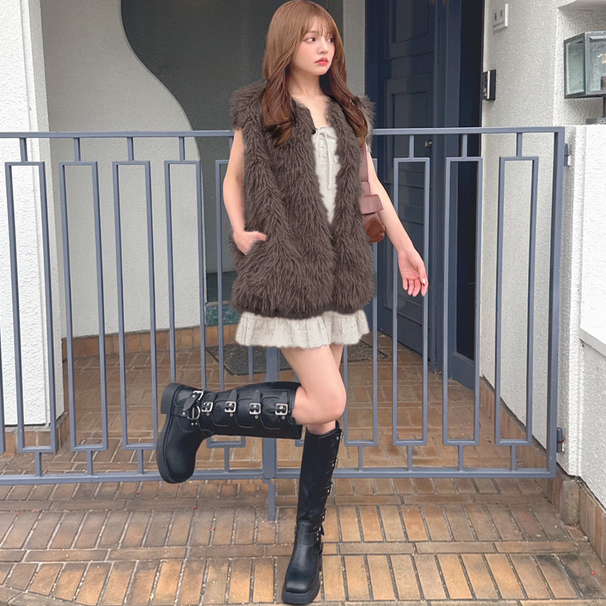 首页> 女装> C11031日单GL秋冬新款圆领单排挂扣宽松保暖女甜美气质毛毛马夹