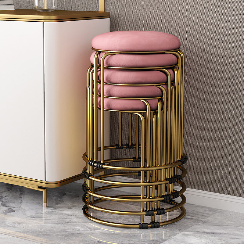 北欧钢筋凳子家用成人简易加厚圆凳可叠放矮凳客厅网红餐桌高板凳