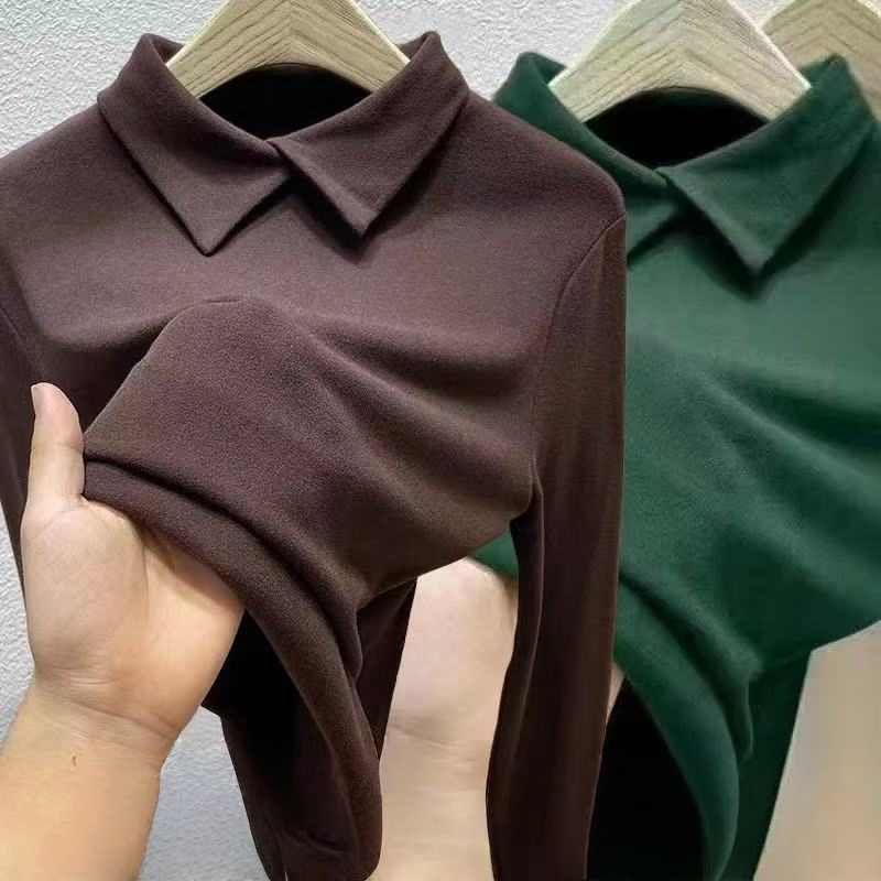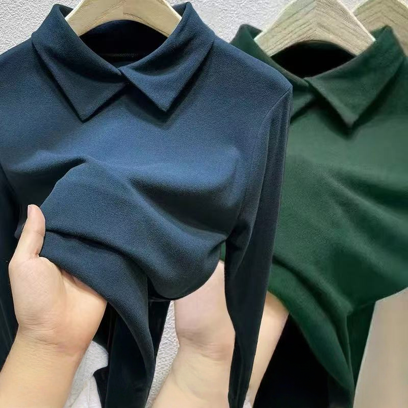 气质POLO领韩版2025新款秋冬单/两件德绒修身内搭百搭长袖上衣
