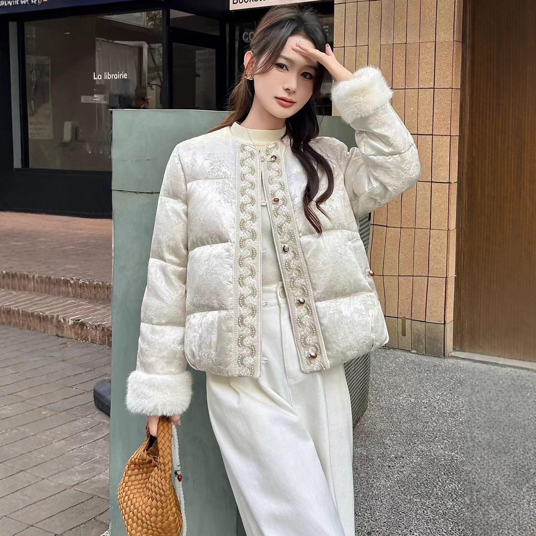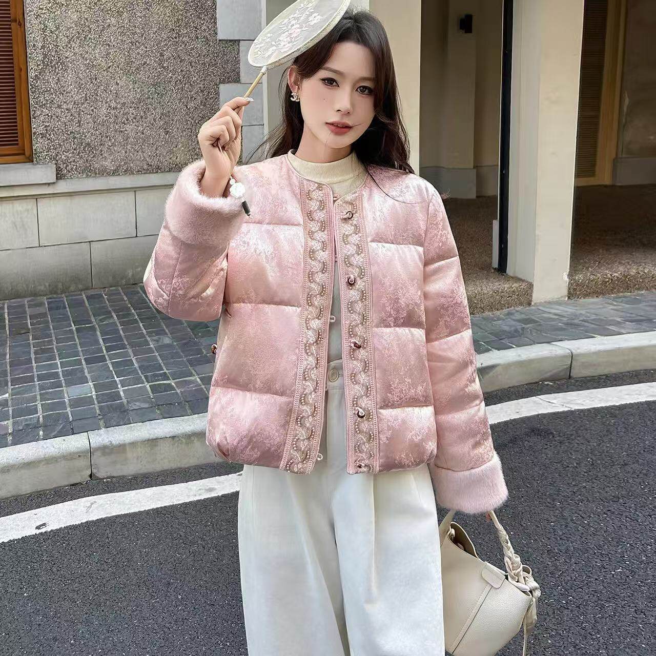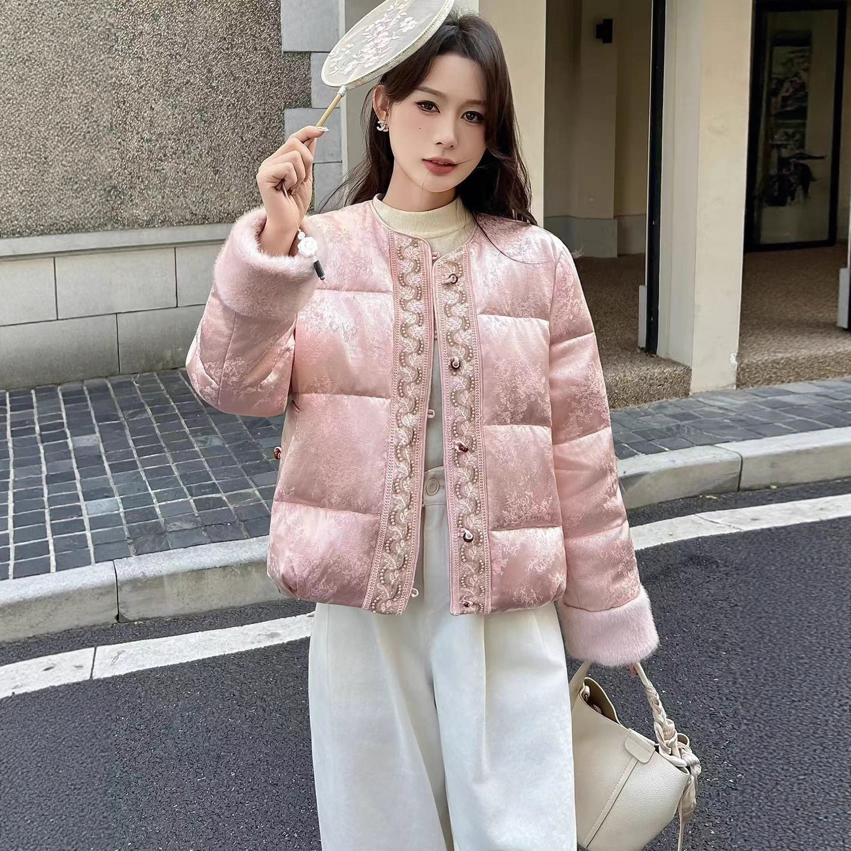2025新款新中式国风羽绒服香云纱提花重工刺绣复古国潮短款外套