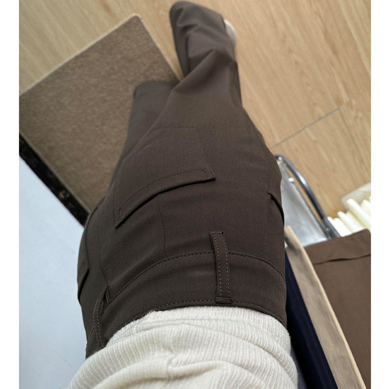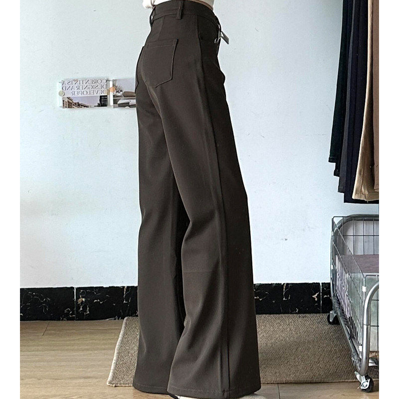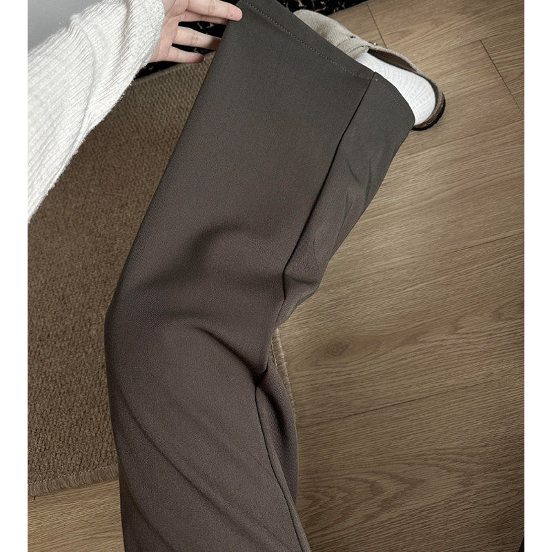 棕咖色加绒加厚微喇西装裤女2025新款冬低腰高级垂感直筒休闲裤子
