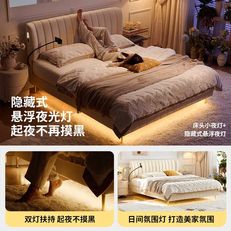 桐语特轻奢极简主卧1.8米双人1.5现代简约北欧皮艺软床婚床真皮床
