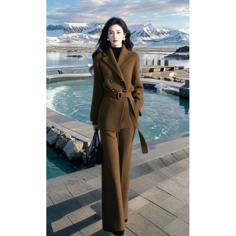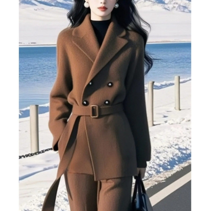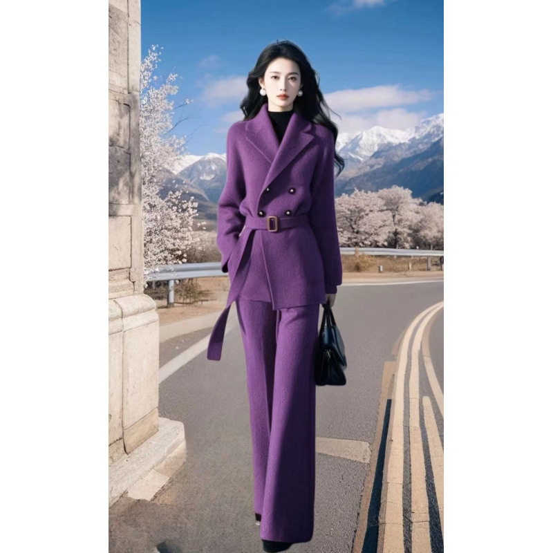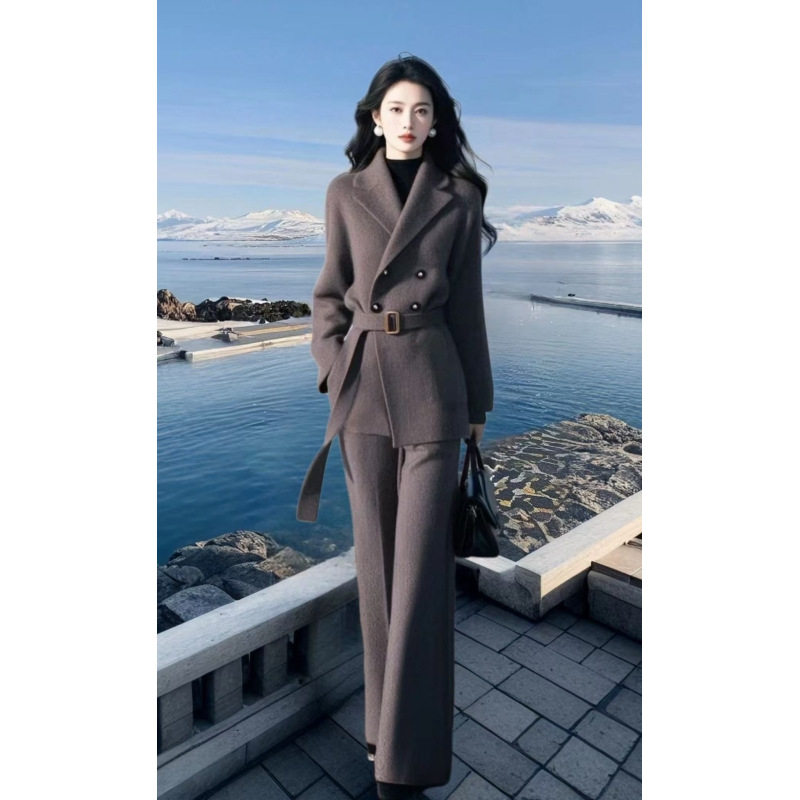 2025法式复古套装外套新款阔腿裤女装针织气质小香风两件套潮