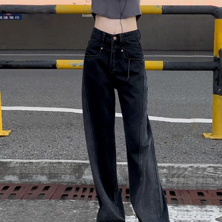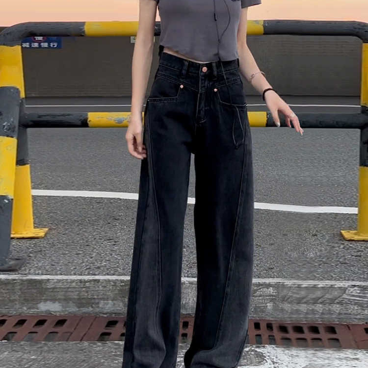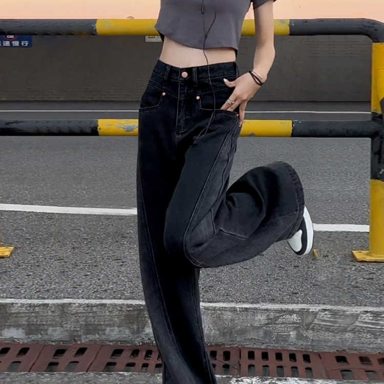首页> 女装> 黑色阔腿牛仔裤女夏秋季2025年新款高腰显瘦宽松小个子直筒长裤子