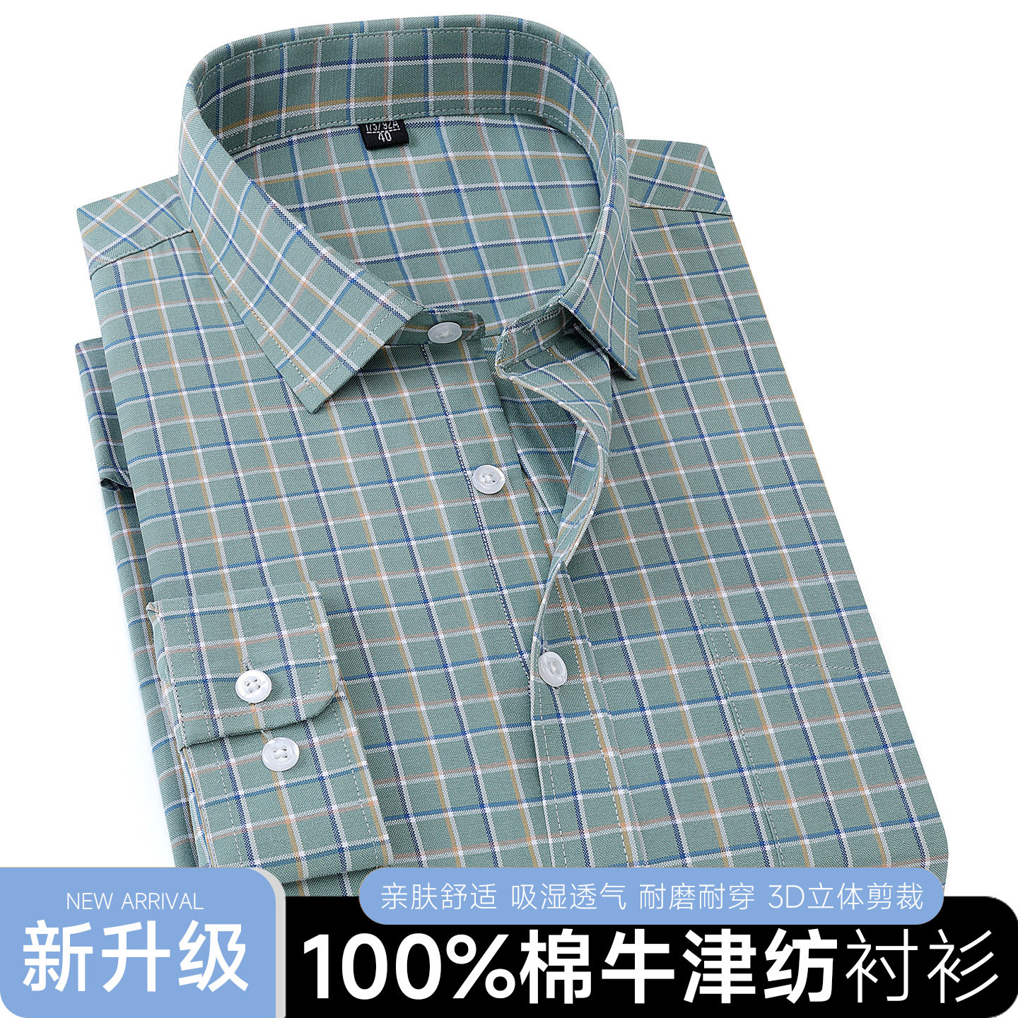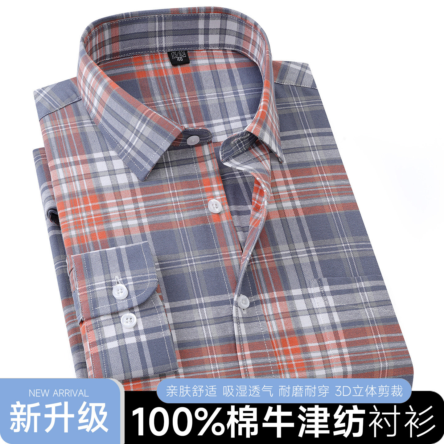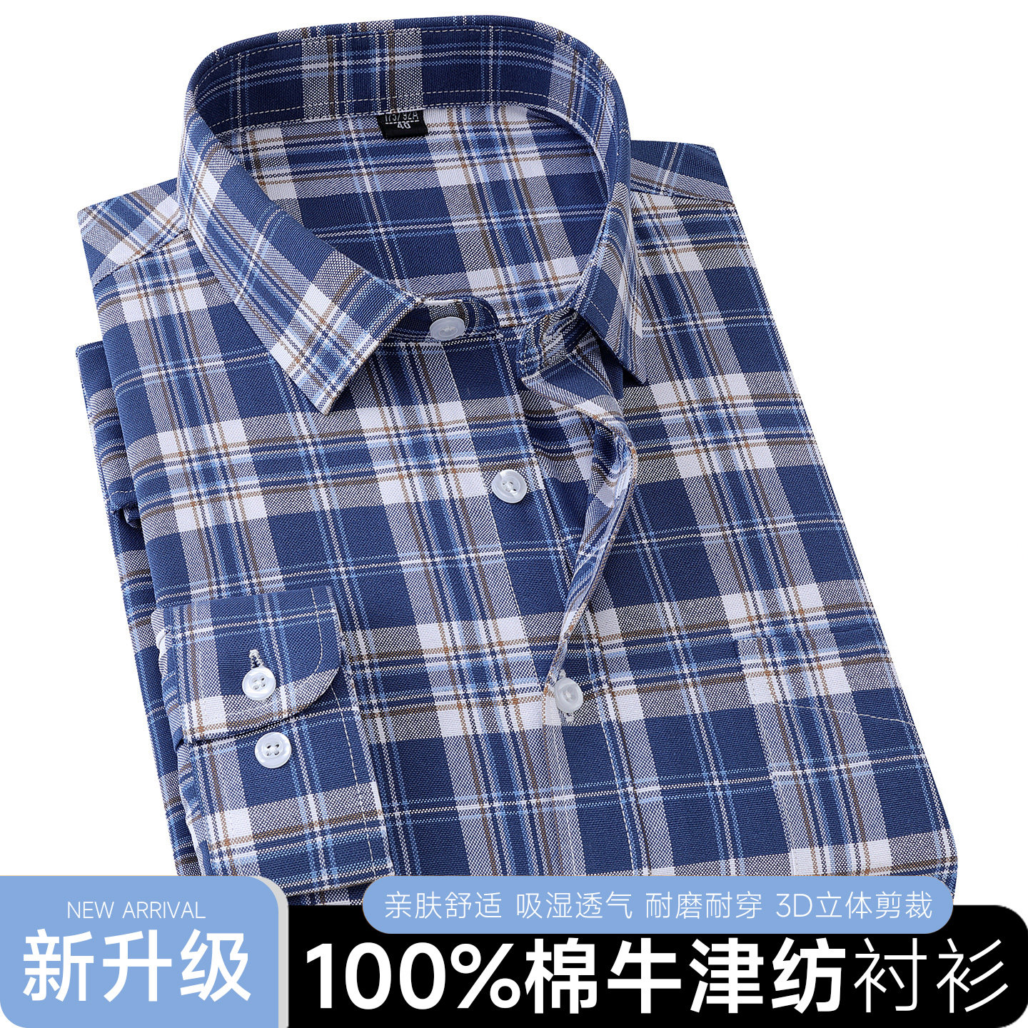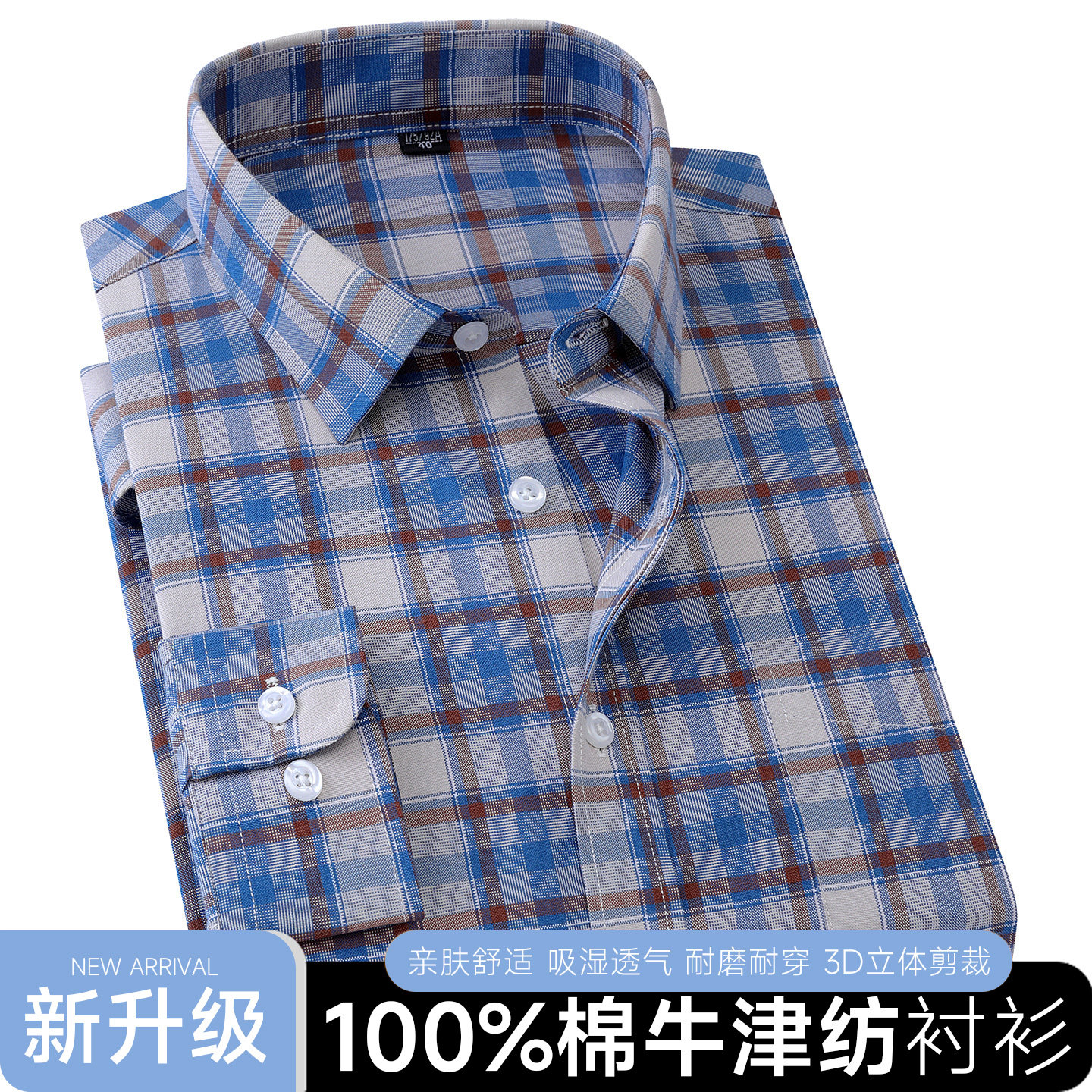 纯棉牛津纺长袖衬衫男春秋格子条纹商务休闲宽松大码全棉免烫衬衣