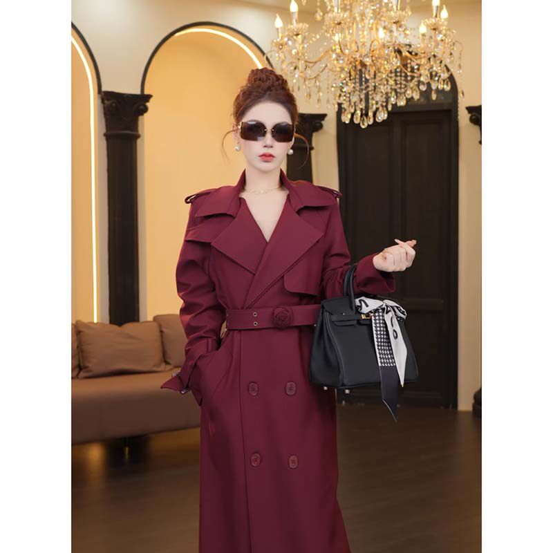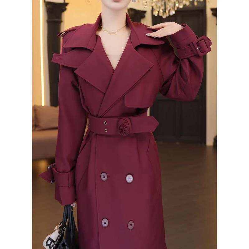 有里布【送腰带】春秋季法式显瘦收腰翻领女气质风衣女神TX0183