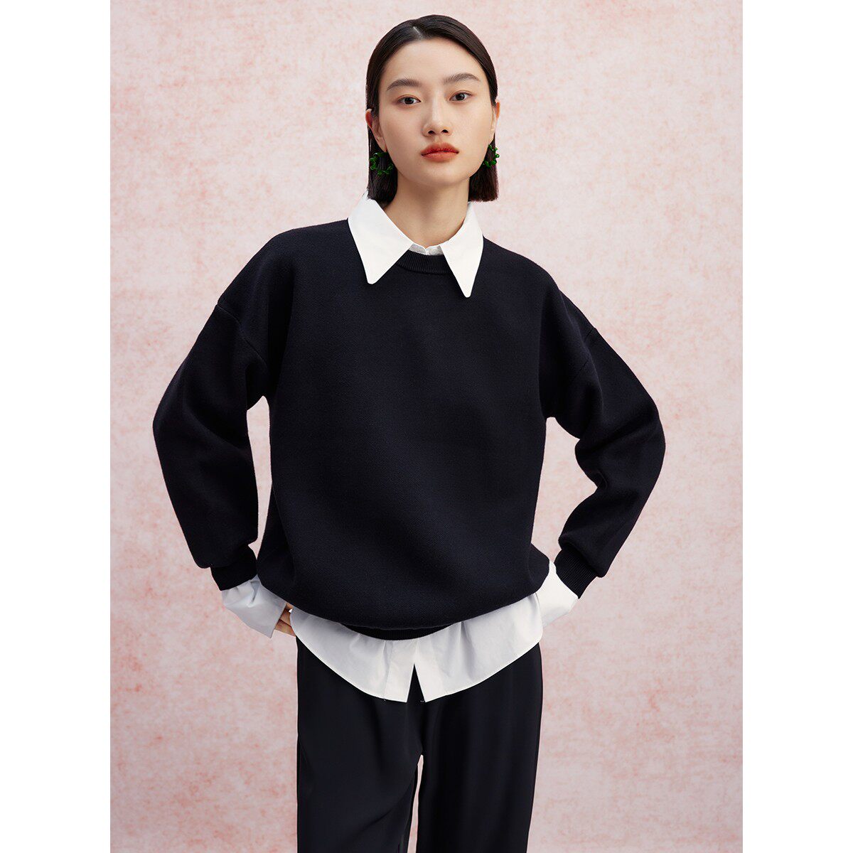 【呼呼专享】曼德诗加厚针织卫衣保暖阔版套头毛衫M733305535