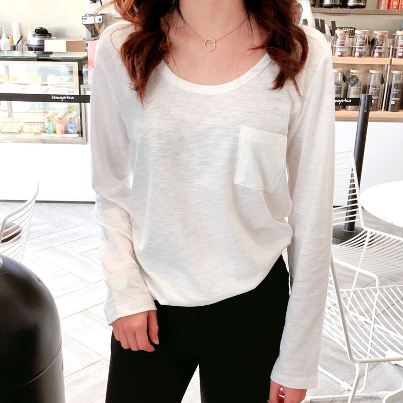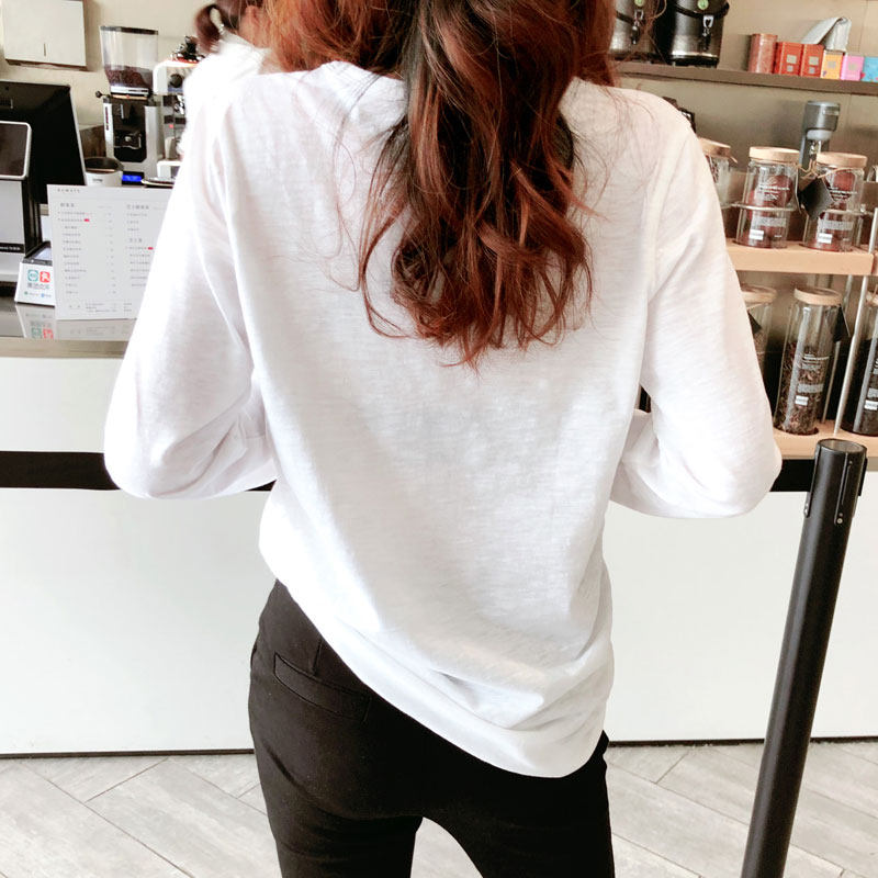 2025韩国春秋新款白色长袖t恤女宽松打底衫纯棉竹节棉韩版上衣潮
