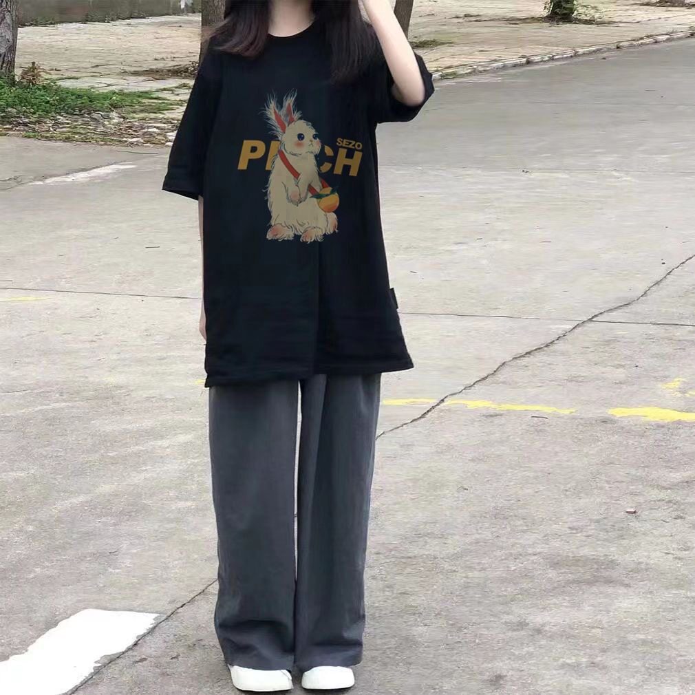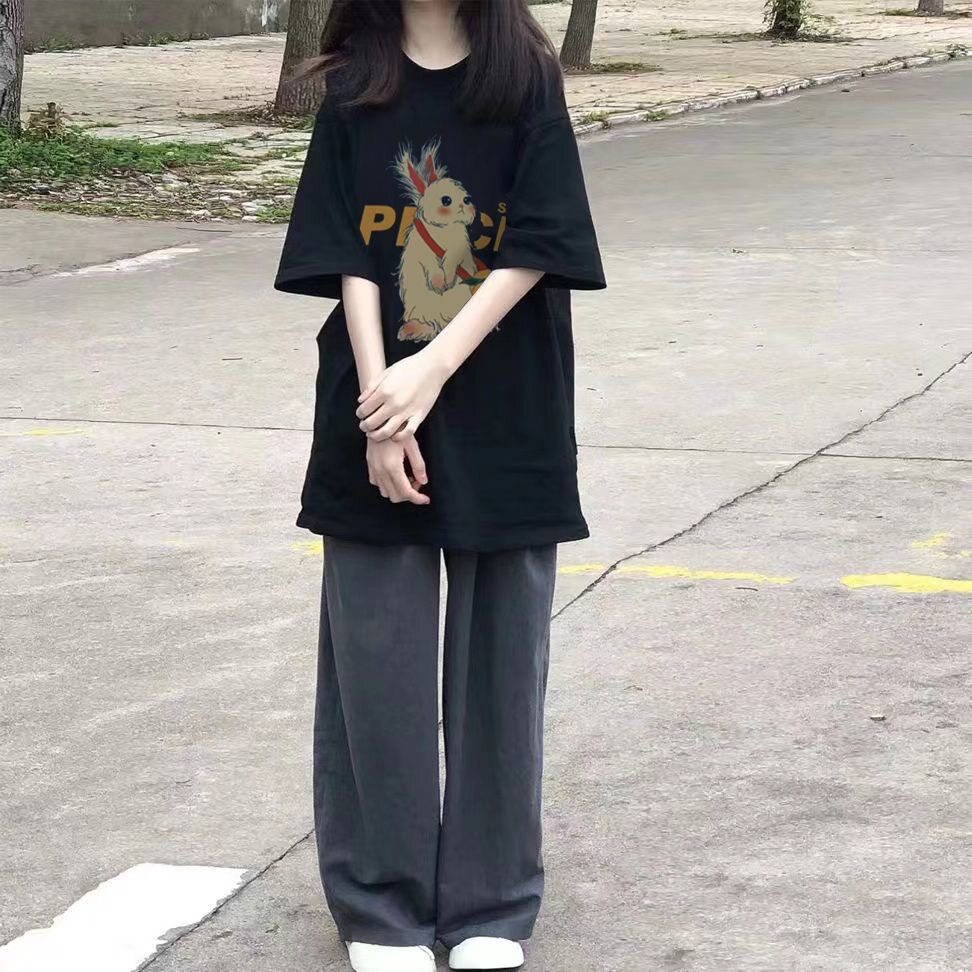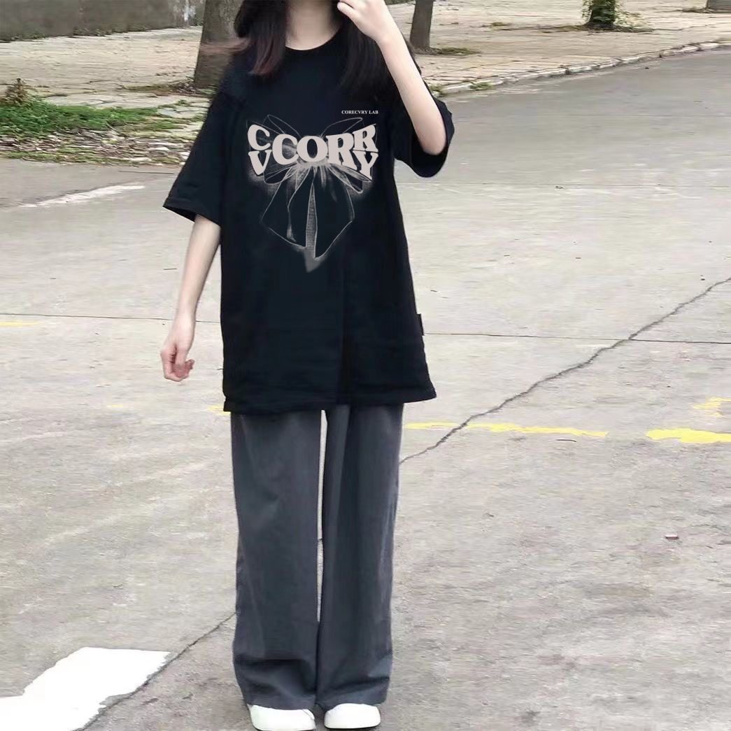 夏季套装女学生小个子韩版宽松短袖t恤休闲阔腿裤子两件套ins潮流