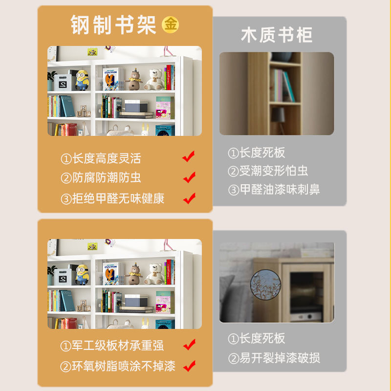 钢制书架家用儿童落地靠墙图书馆铁艺书柜玩具绘本书籍收纳置物架