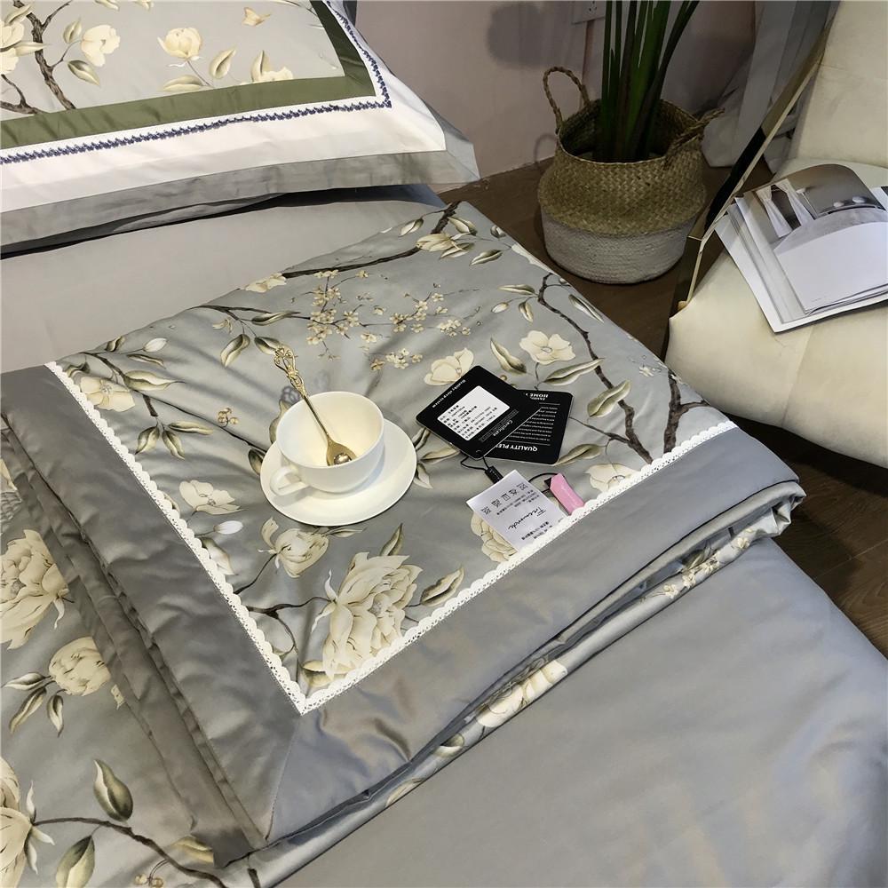 薄被子田园80支丝光长绒棉夏凉被夏季双人镂空蕾丝贴边空调被美式