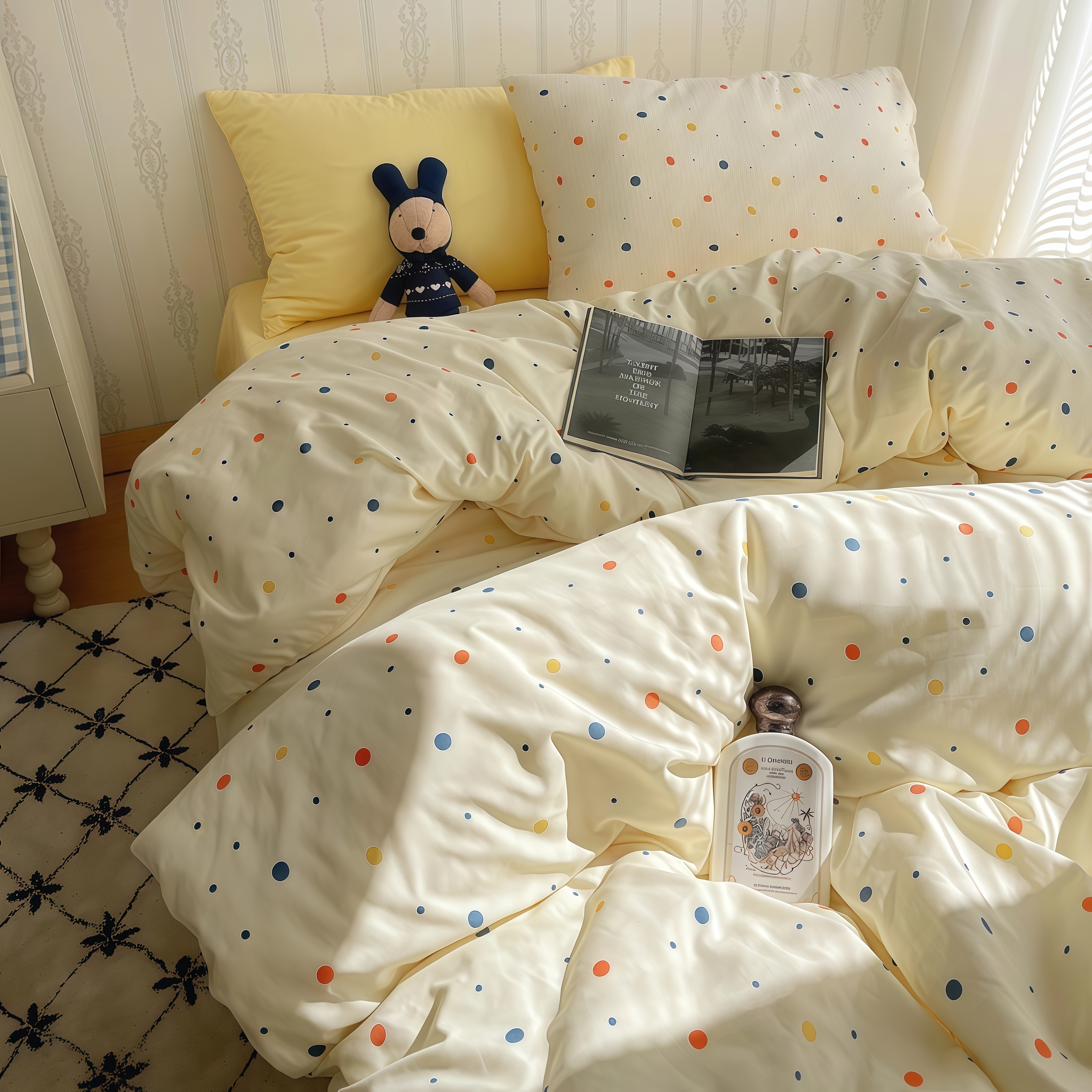新款水洗棉四件套印花波点柔软儿童宿舍单人非纯棉三件套床上用品