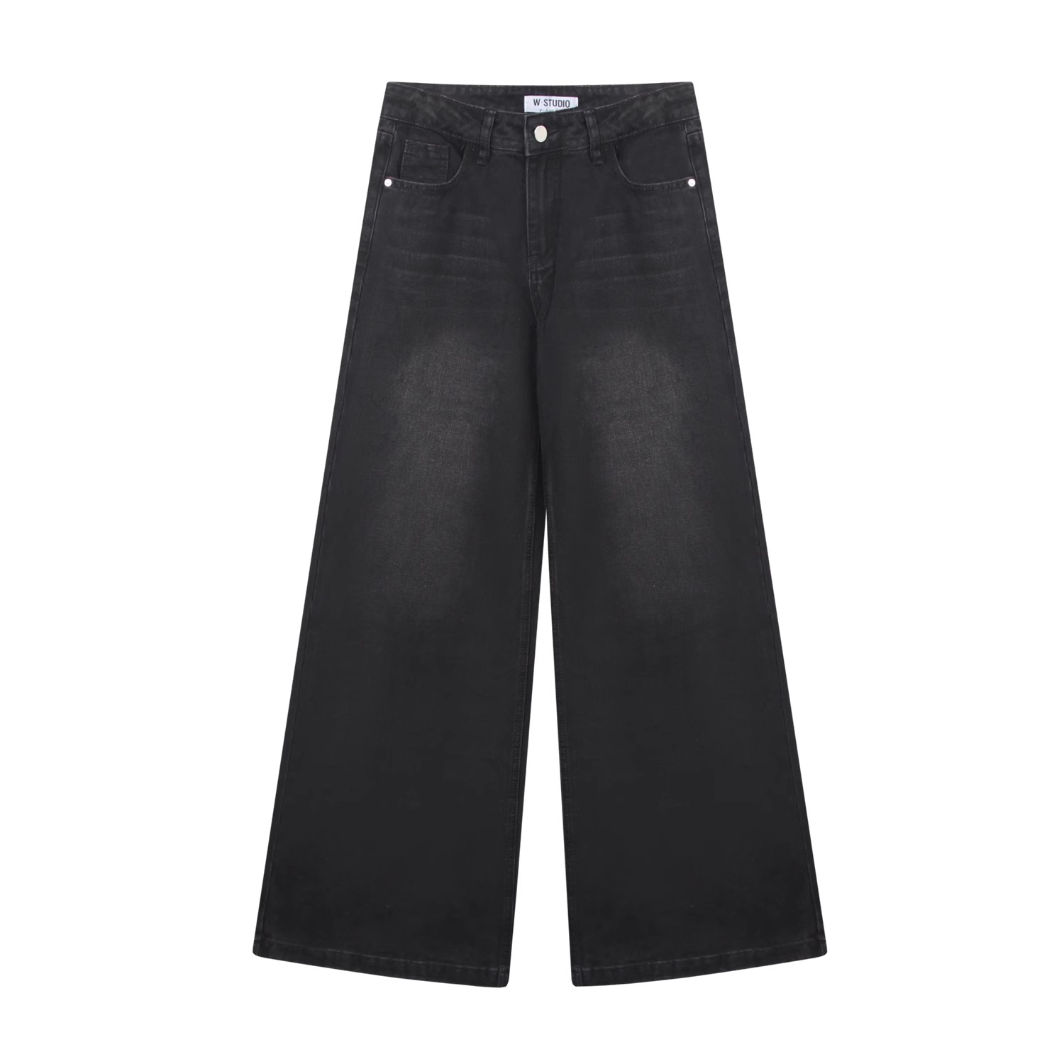 【Aliu自制】高街时尚百搭水洗牛仔裤女宽松潮流阔腿裤秋冬新款