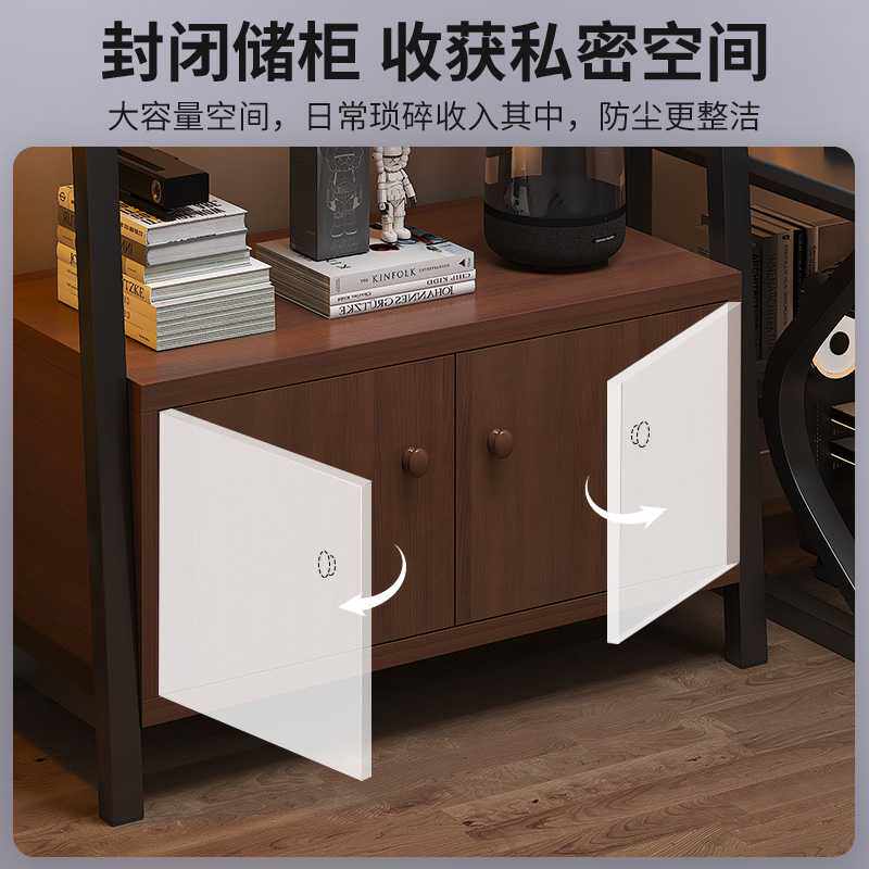 置物架落地收纳架多层书架电竞房电脑桌旁储物柜铁艺梯形展示