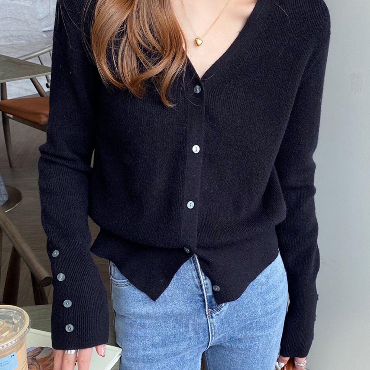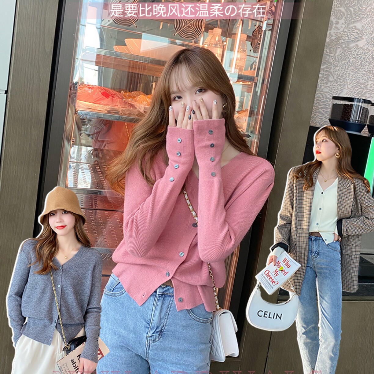 v领针织开衫外套新款女装内搭打底衫春秋薄款宽松上衣