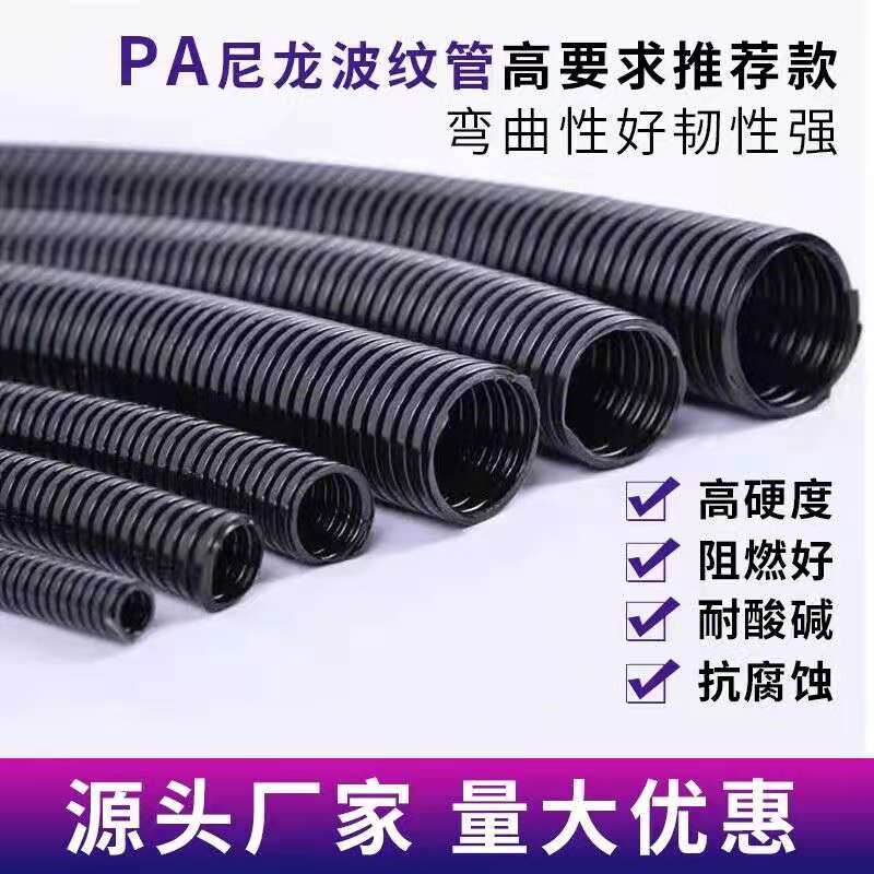 加厚型PA阻燃尼龙波纹软管塑料波浪管汽车线束用耐高温开口波纹管
