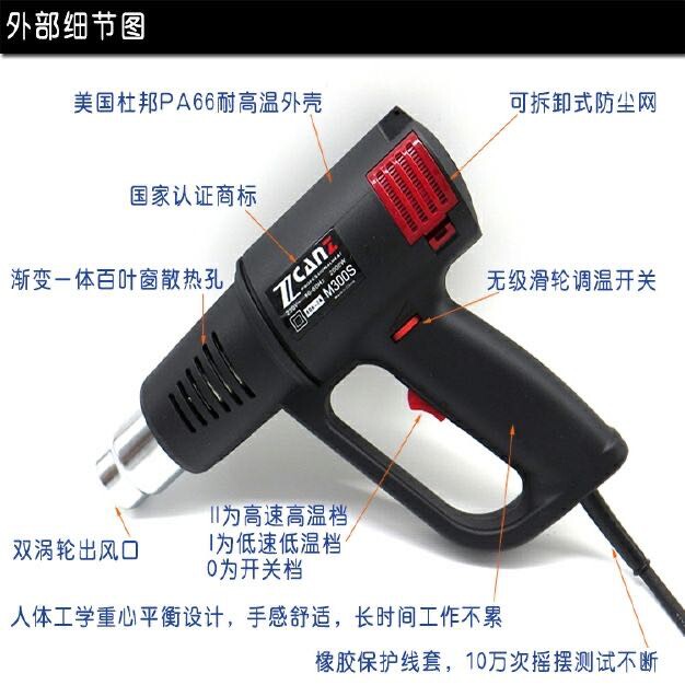 卓能调温热风枪Zcanz手持汽车贴膜烤枪烘枪工业吹风机 塑料焊枪