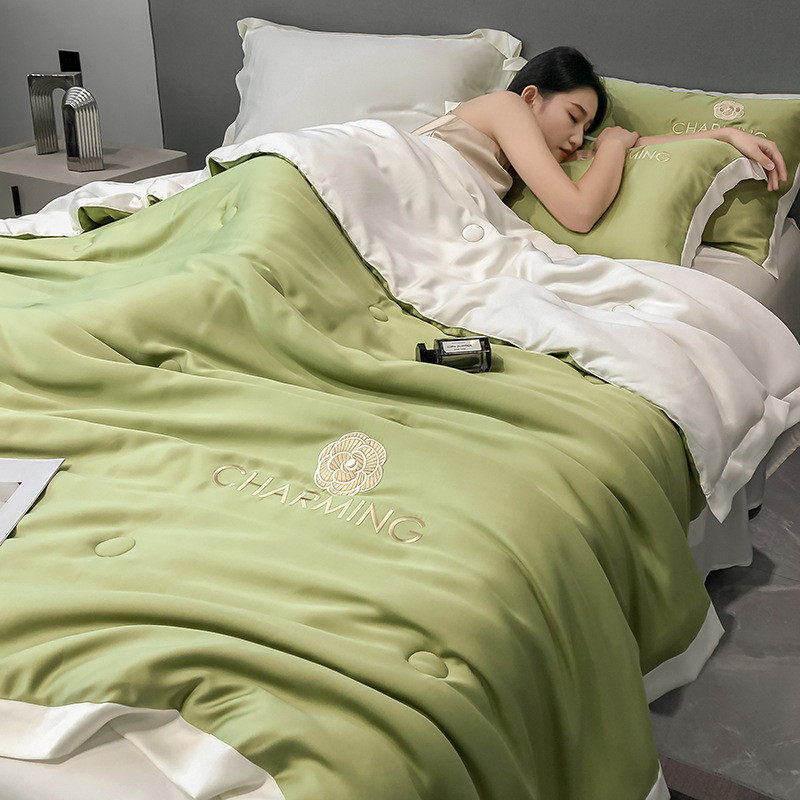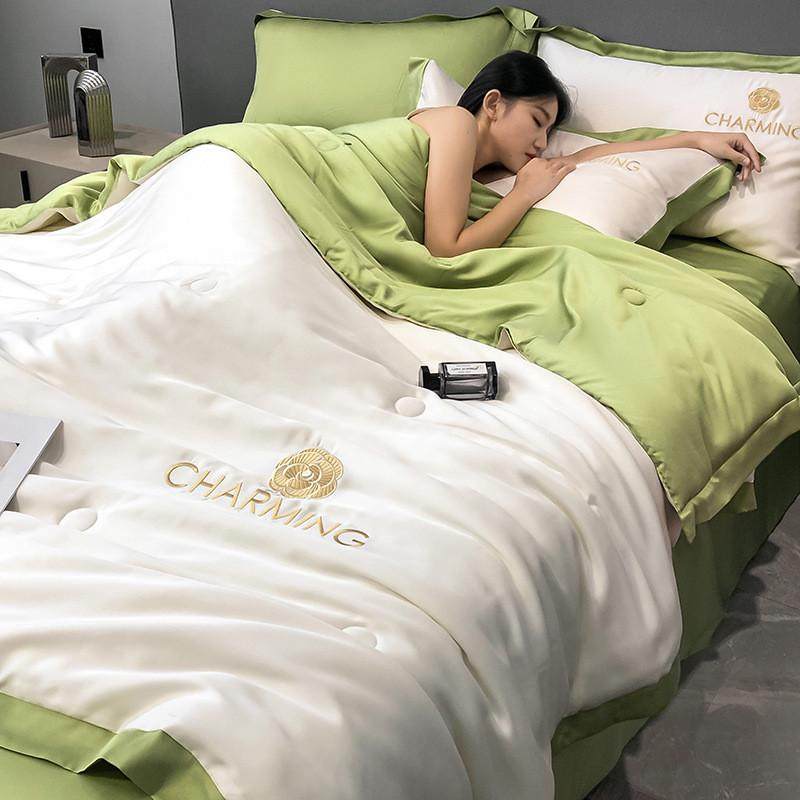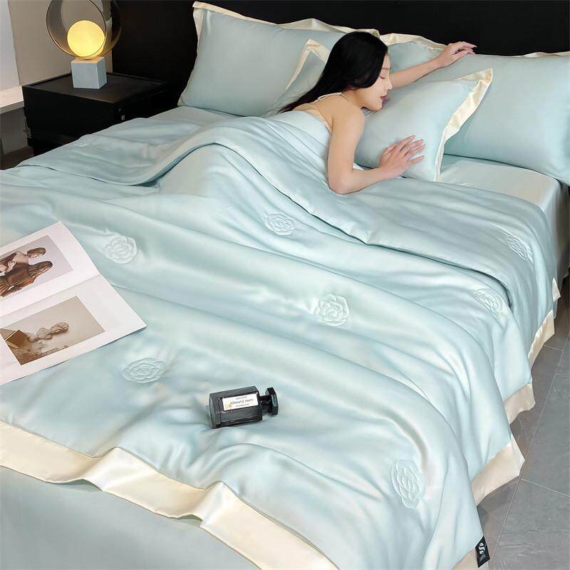 水洗冰丝空调被人单双夏凉被四件套丝滑凉感夏被可机洗薄被子床笠