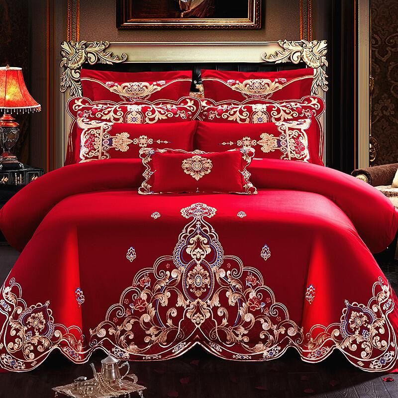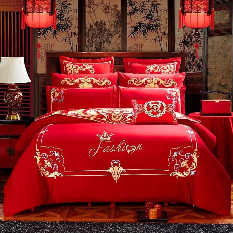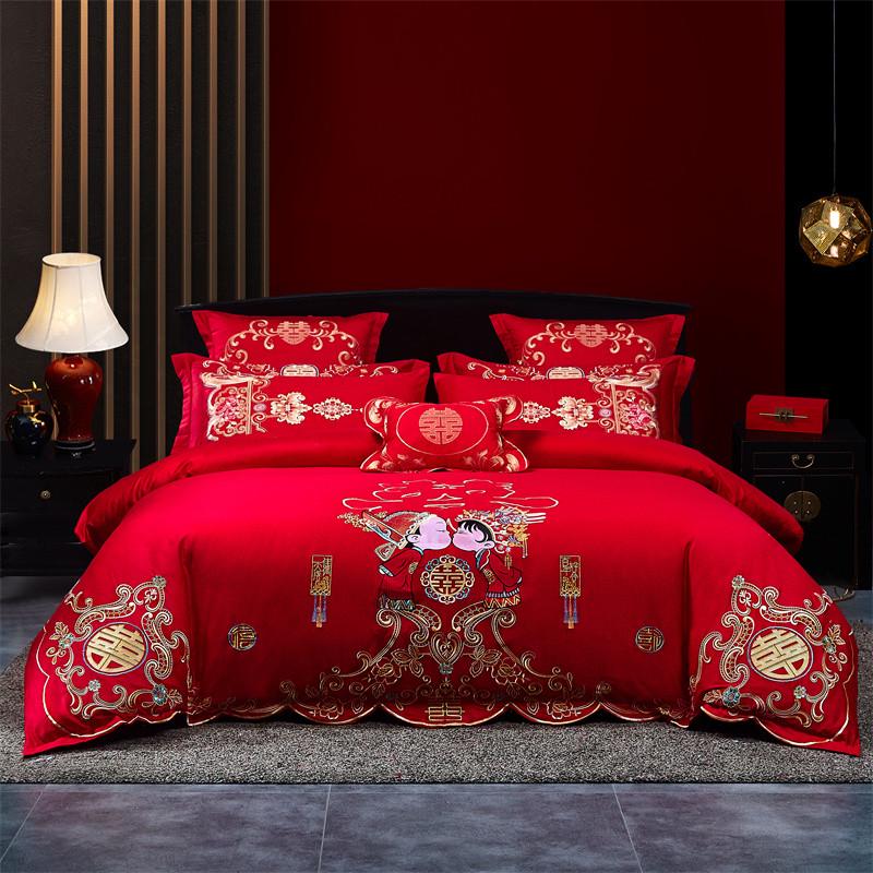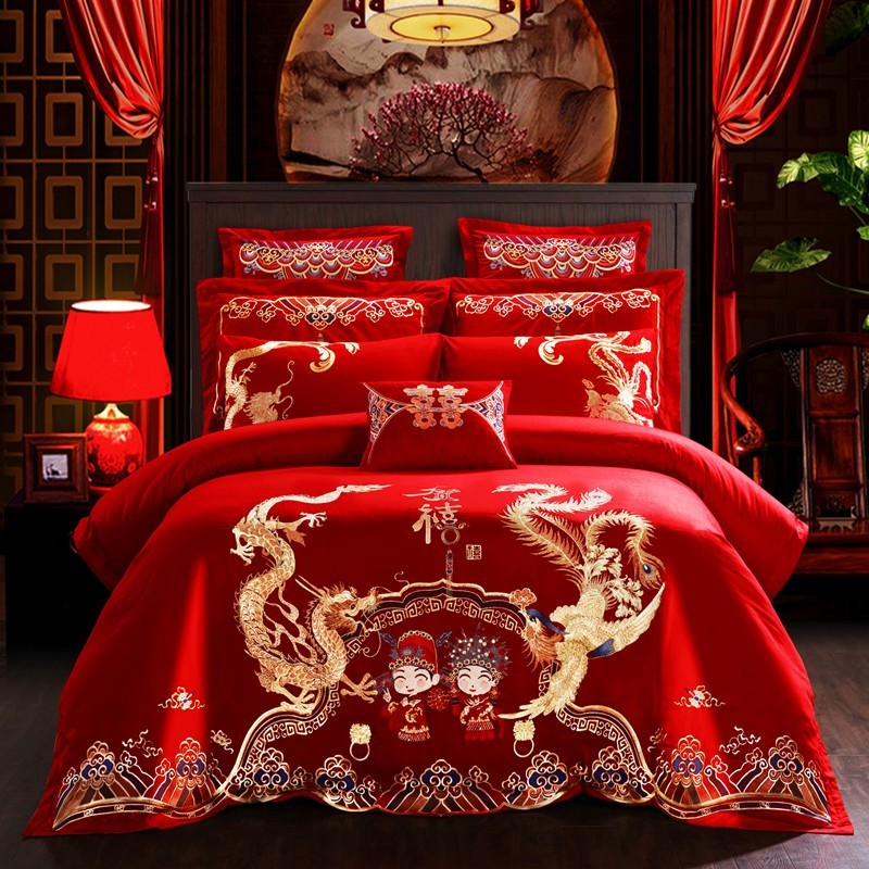 婚庆四件套大红色全棉龙凤床上被套中式结婚纯棉陪嫁喜庆刺绣新款