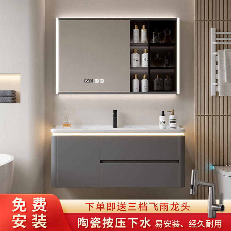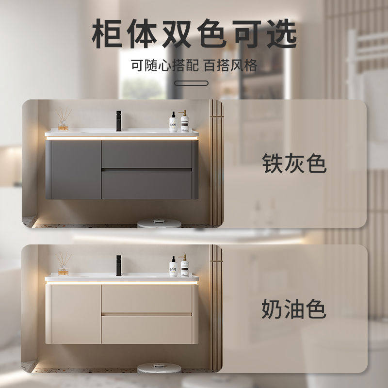 轻奢风陶瓷一体盆圆角浴室柜组合卫生间洗漱台洗手池洗脸盆洗