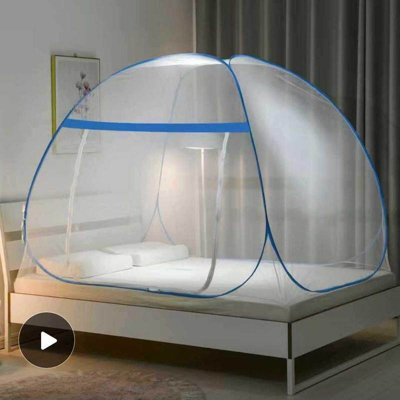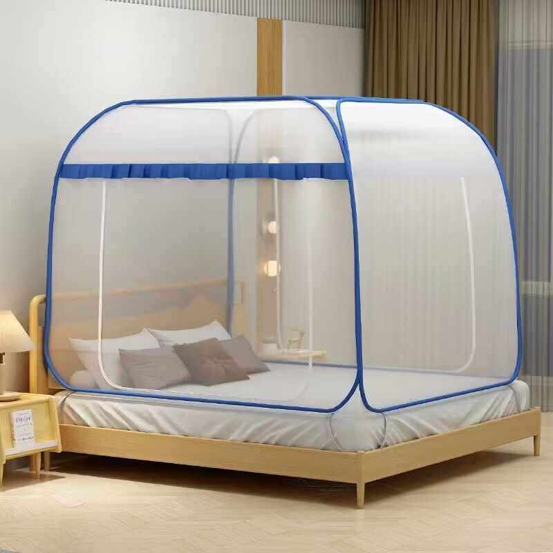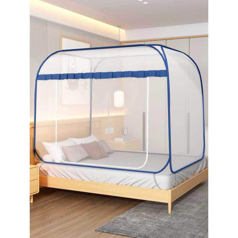 4y夏季2024新款蚊帐蒙古包家用免安装卧室防摔折叠宿舍儿童条纹帐