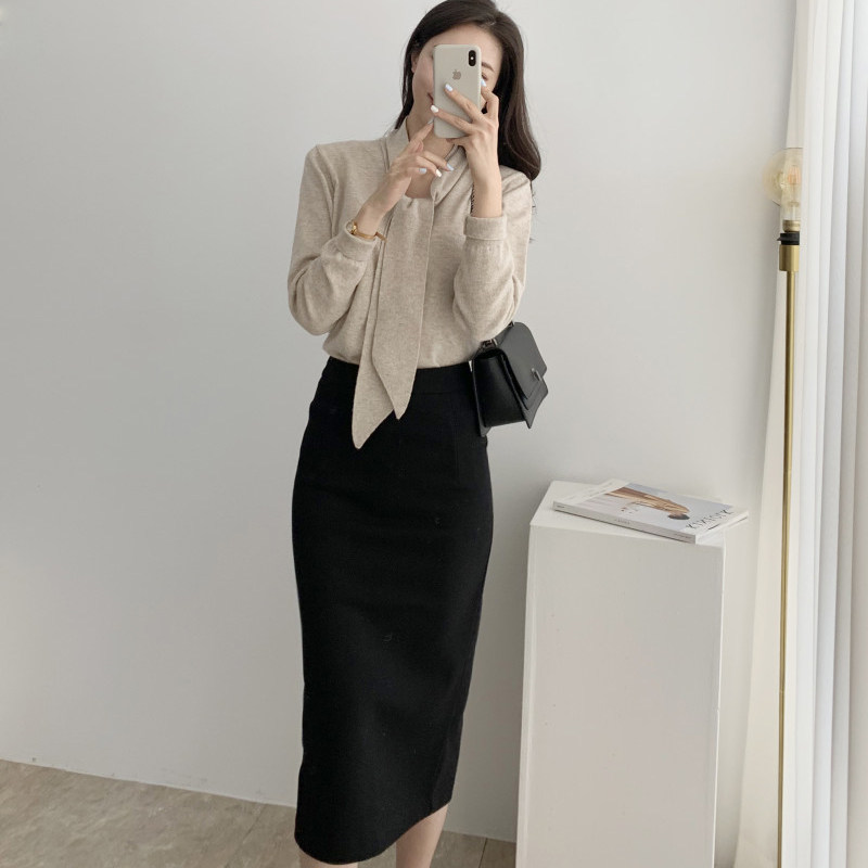 秋冬毛呢半身裙灰色包臀裙女高腰显瘦一步裙中长半裙冬季裙子