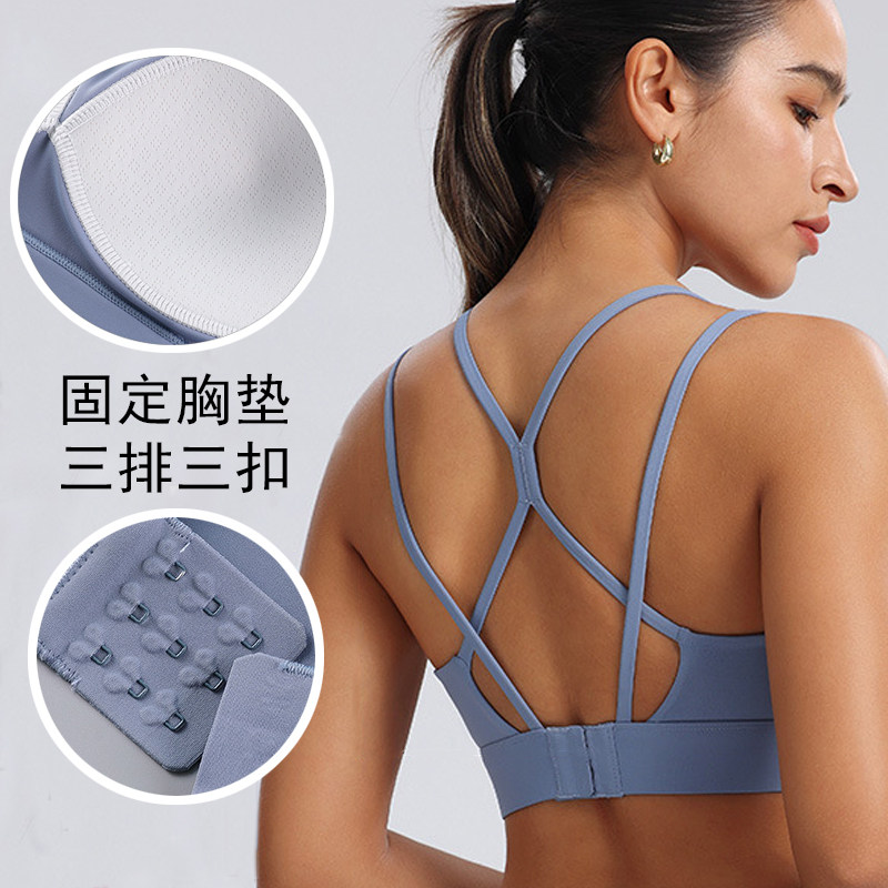 固定胸垫运动文胸女防震跑步聚拢健身瑜伽三排三扣弹力上托背心式