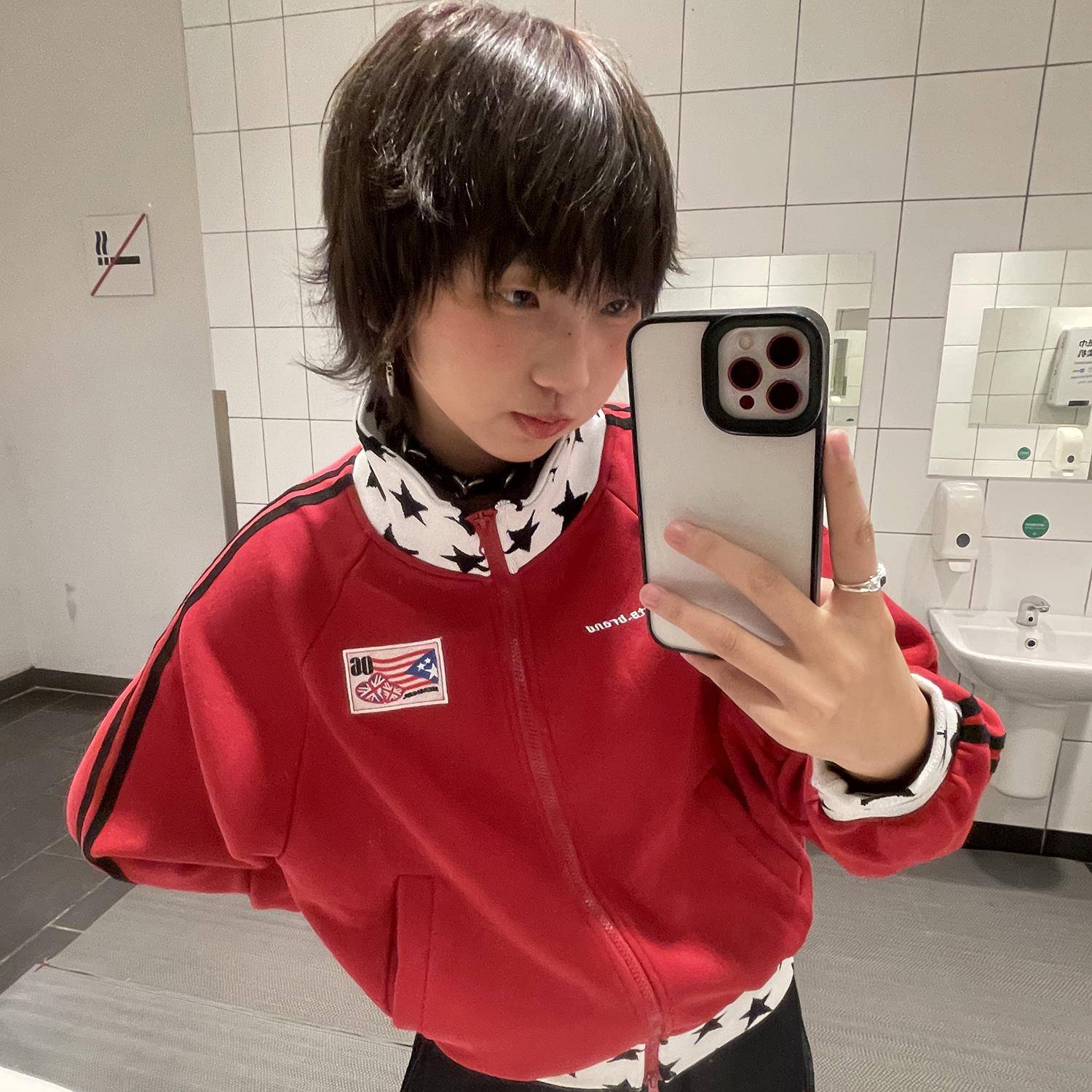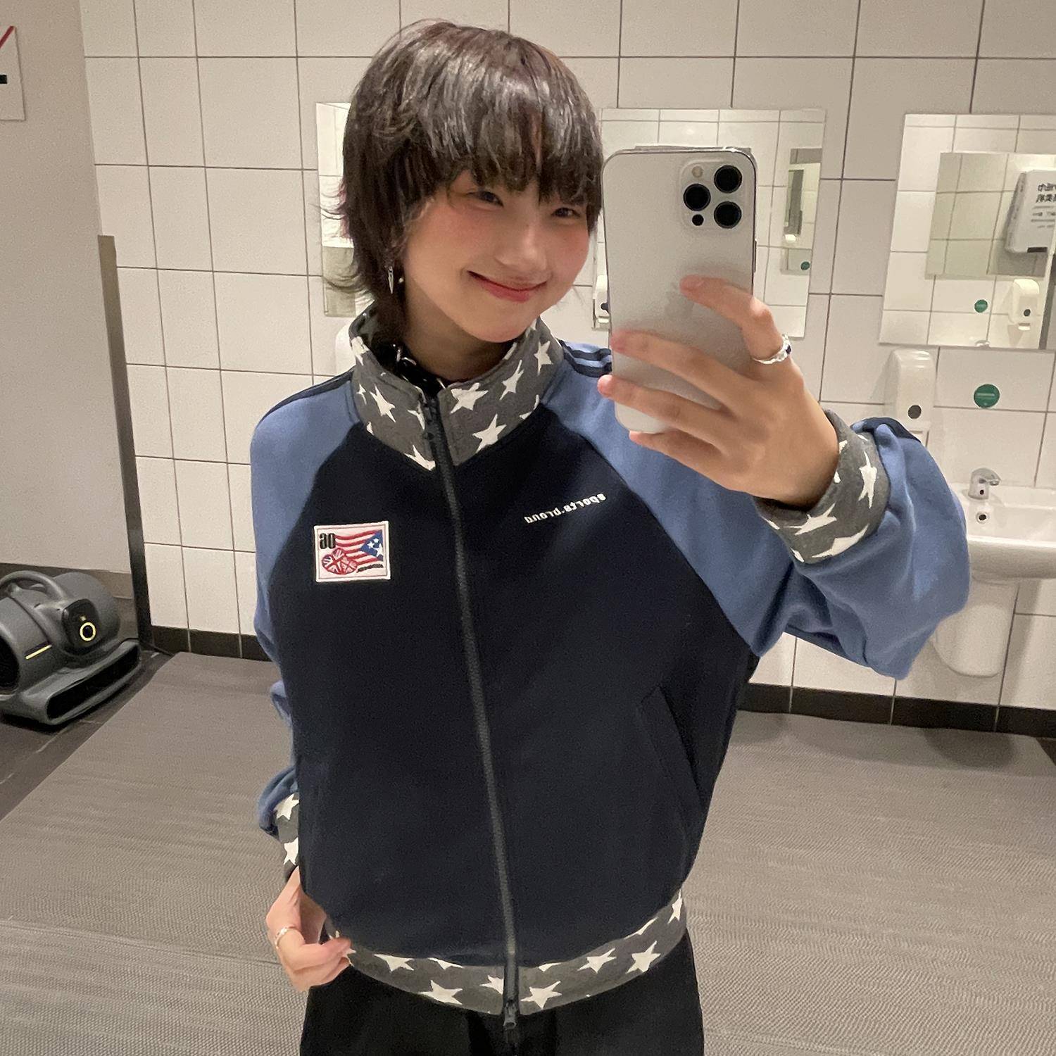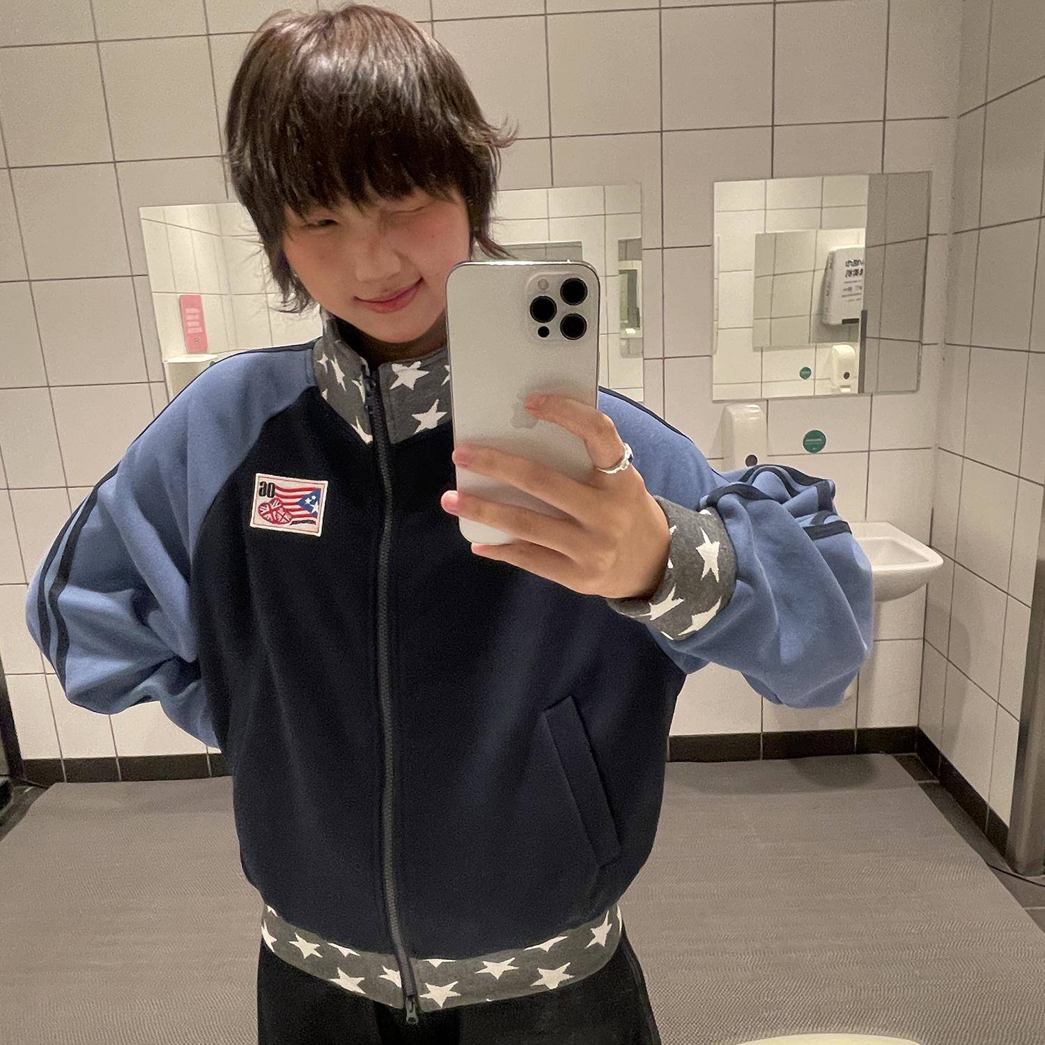 影子星球美式两条杠立领卫衣女星星印花拼接棒球服宽松开衫外套男