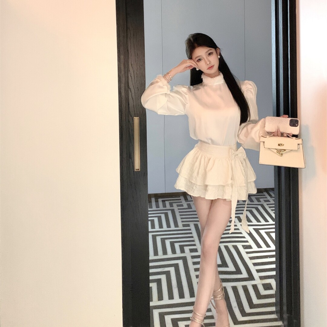 实拍实价 高端国风毛毛立领灯笼袖衬衣上衣秋冬款纯色淑女