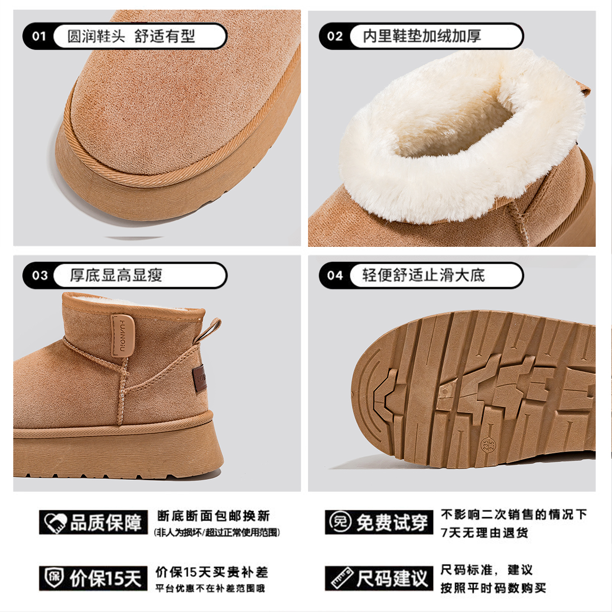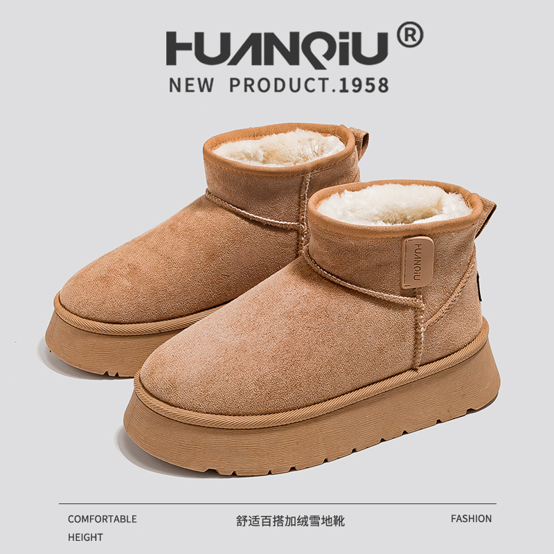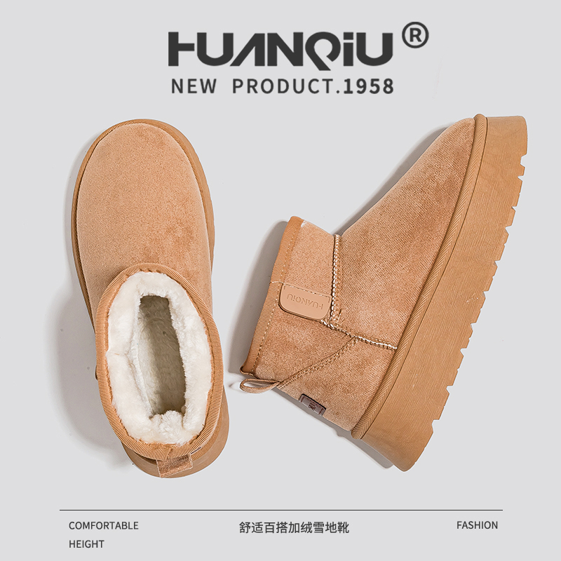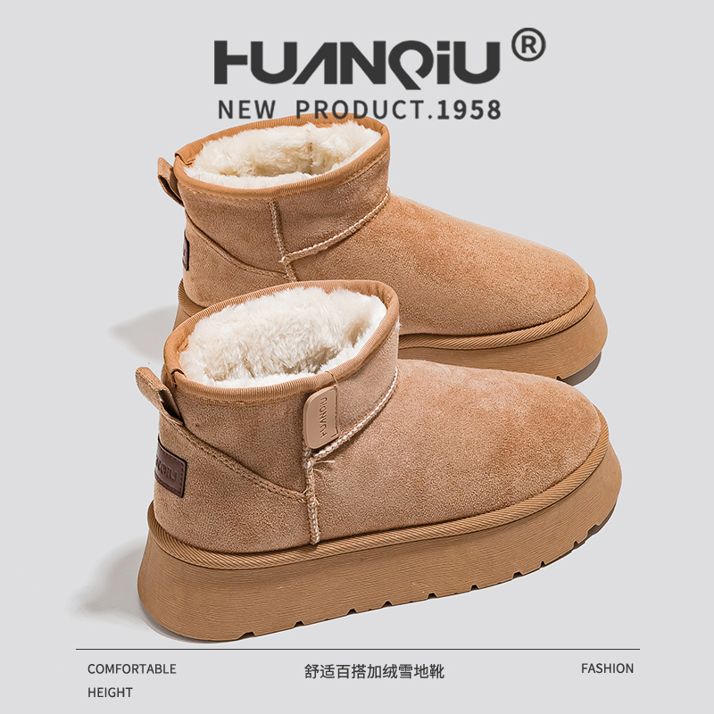 环球加绒加厚雪地靴女2025冬季时尚爆款厚底增高保暖棉鞋女短靴子