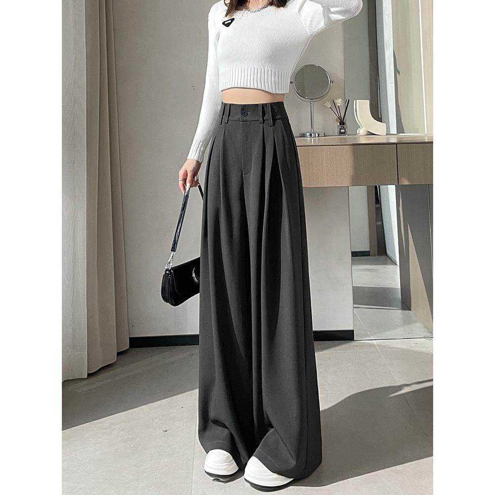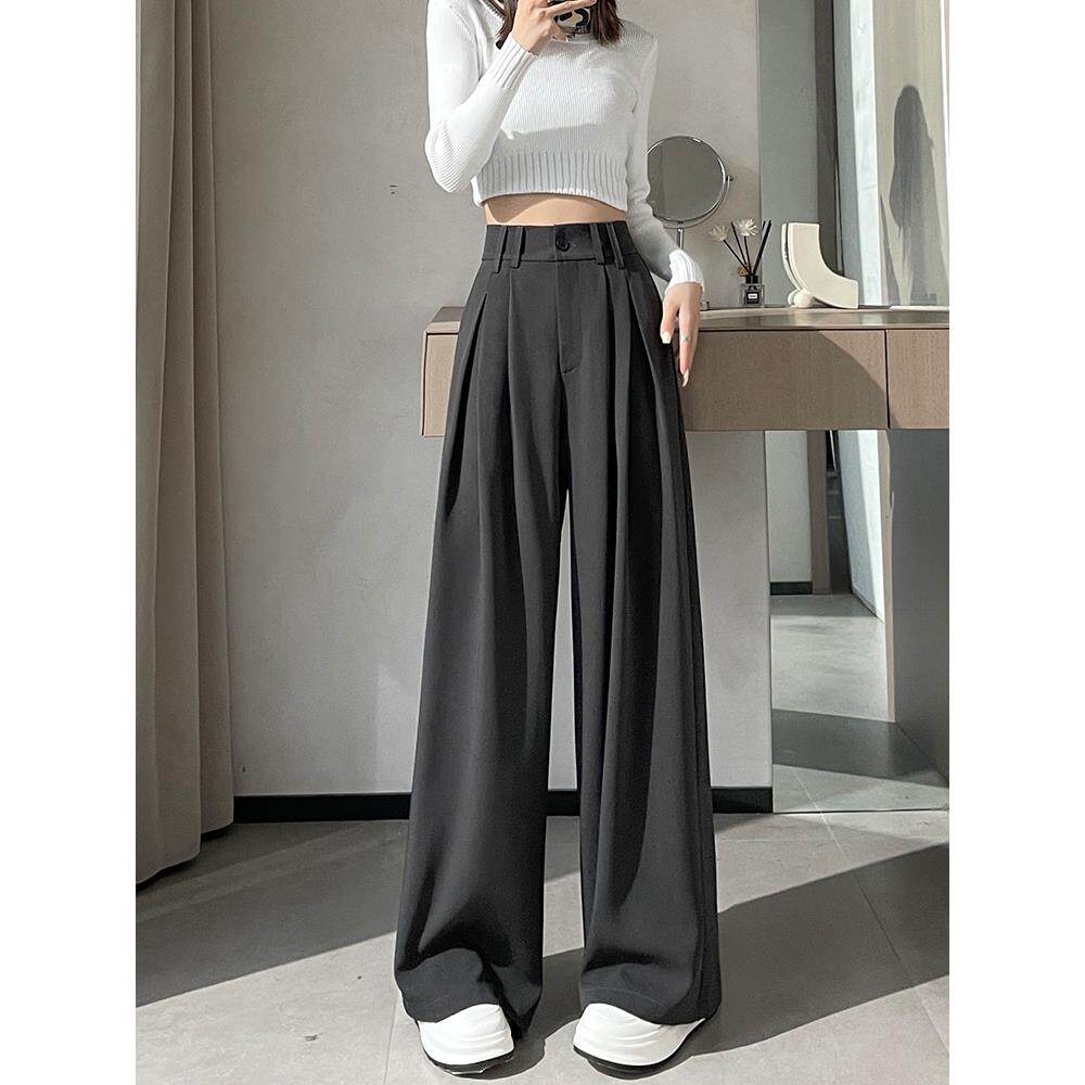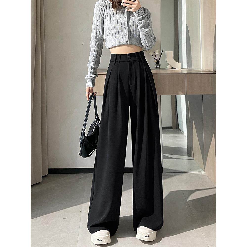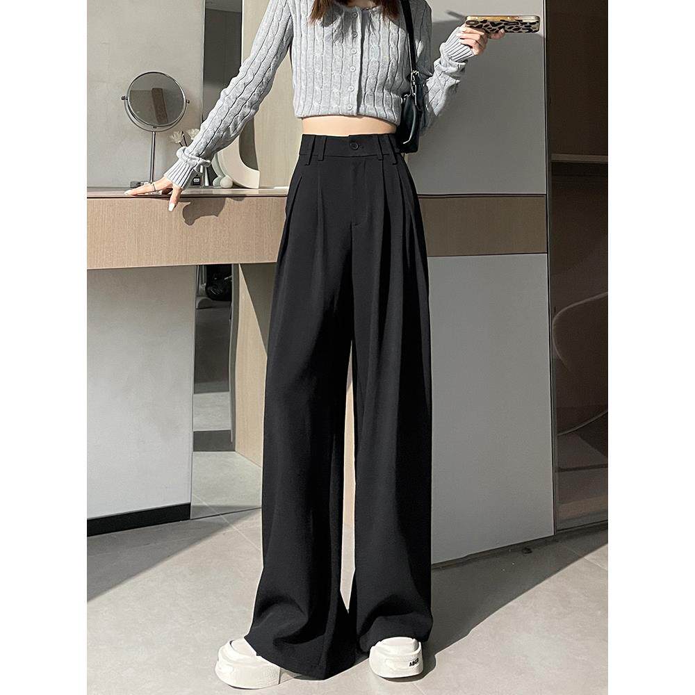 黑色西装裤女春秋2025新款高腰显瘦高级感垂感直筒休闲窄版阔腿裤