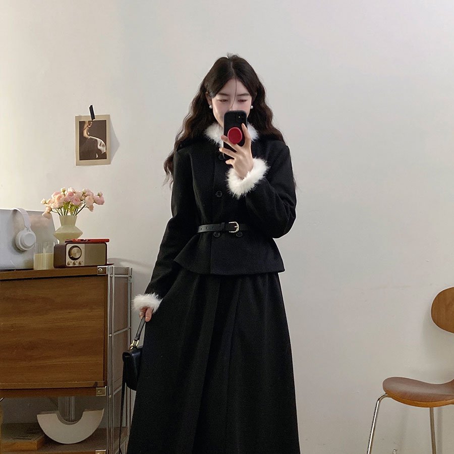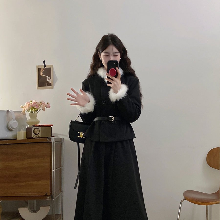 实拍2000套小香风千金感外套百褶半身裙女胖MM藏肉显瘦两件套