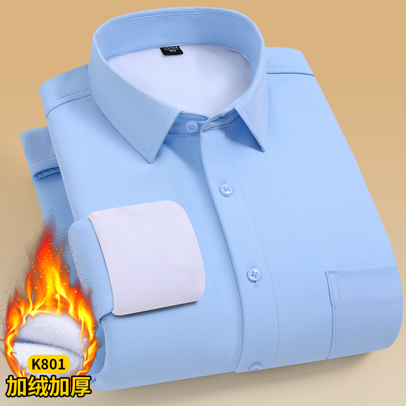 无痕保暖衬衫男士冬季加绒加厚长袖纯色中老年抗寒带绒衬衣男上衣