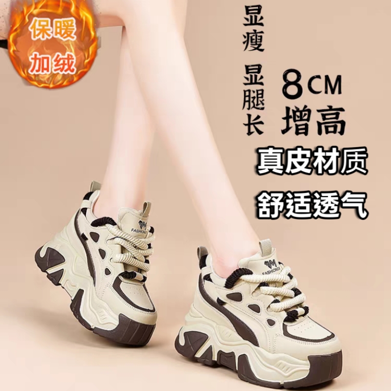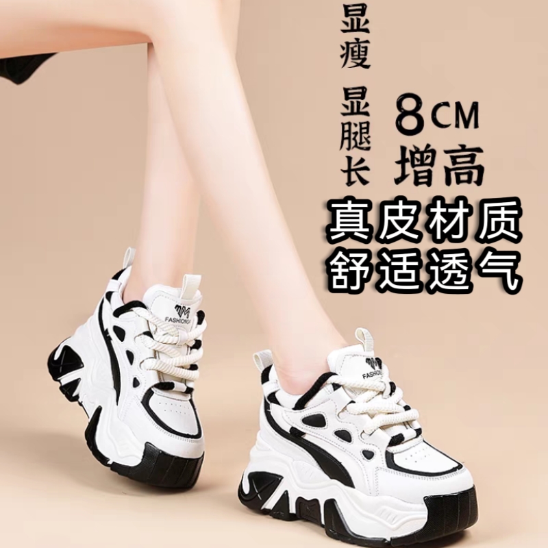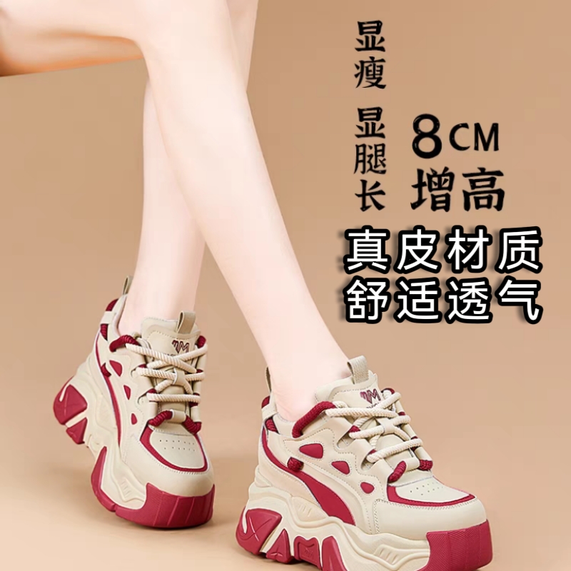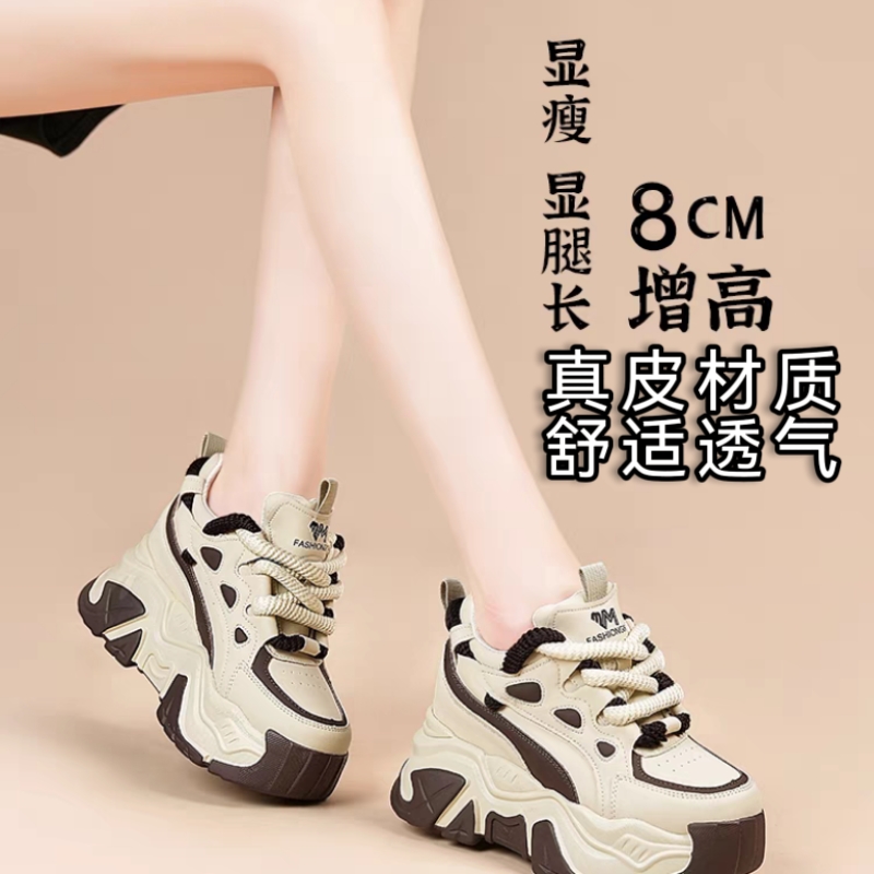 小白老爹鞋女秋季2025新款爆款厚底休闲运动真皮小个子内增高女鞋