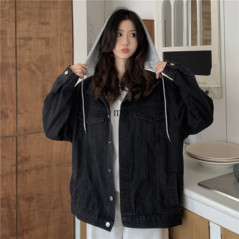 冬季牛仔外套女春秋ins潮连帽夹克衫大尺码胖mm宽松休闲 长袖上衣