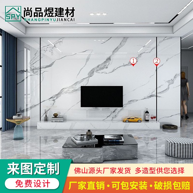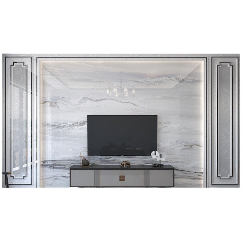 岩板电视背景墙800x2600大板金属线条影视墙装饰新中式客厅电视墙