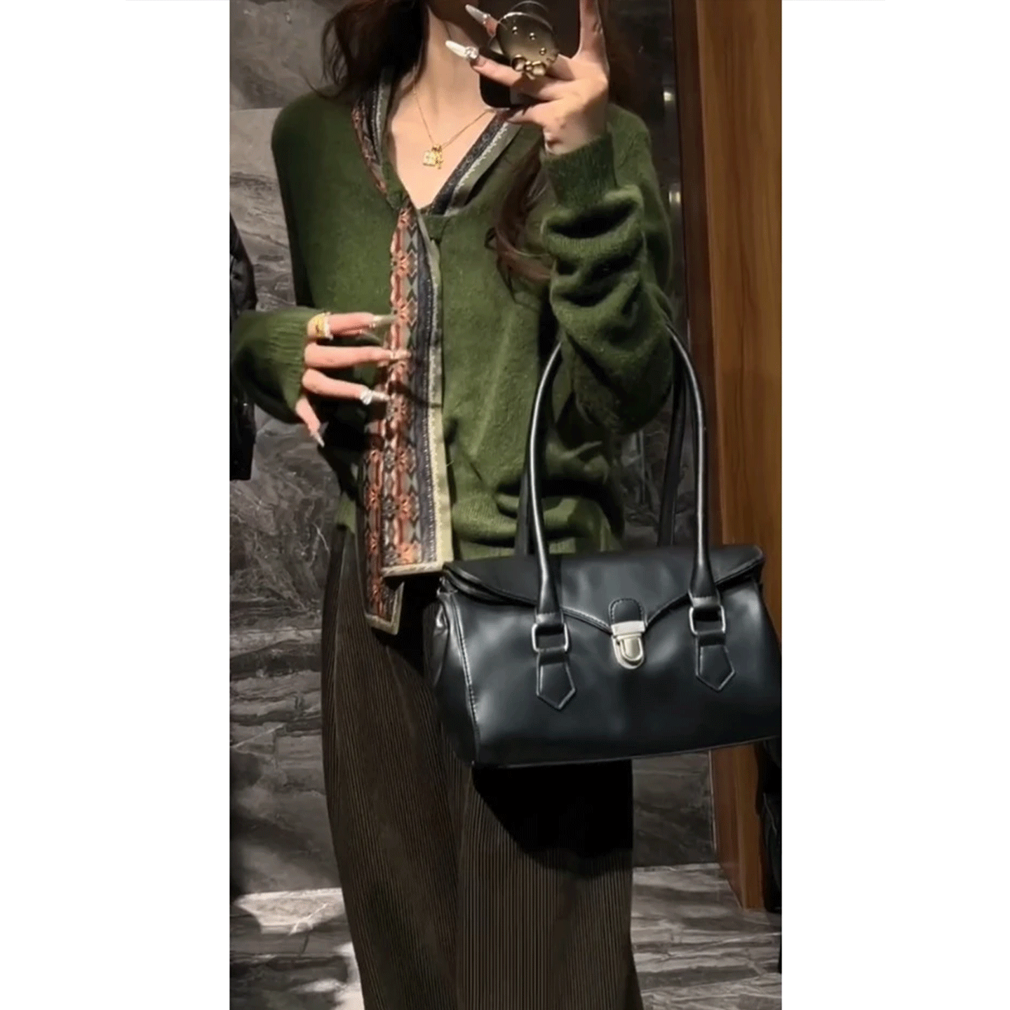 绿色丝巾长袖针织衫女2025春秋季新款欧货减龄毛衣慵懒高级感上衣